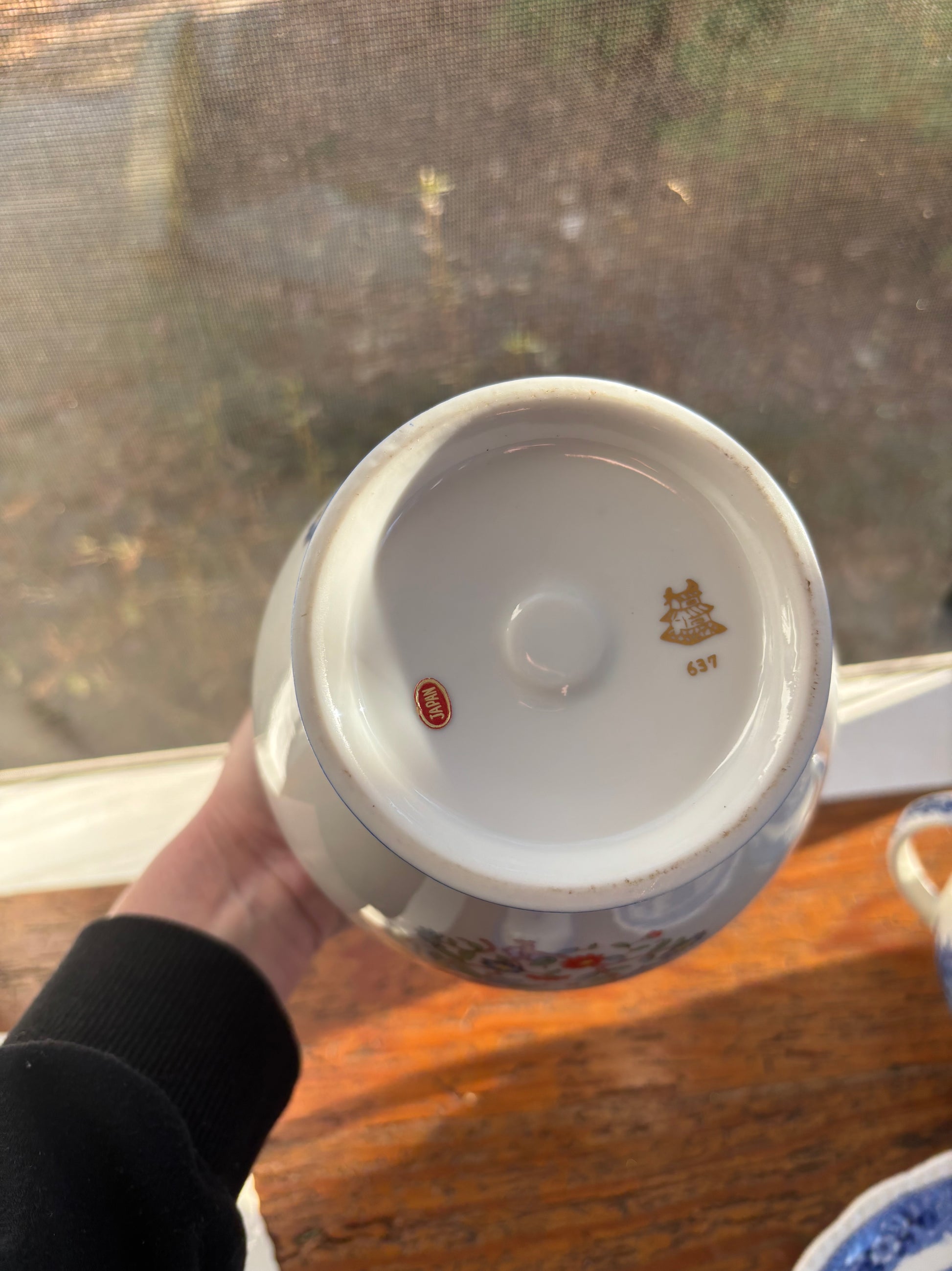 Chinoiserie floral lidded ginger jar with bird! On beautiful condition! Has scenes on both sides! Measures 10 1/4” tall.