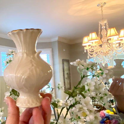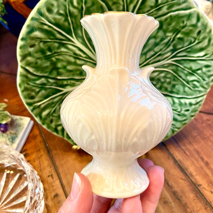 designer Lenox porcelain ivory cabbage leaf vase with gold detailing