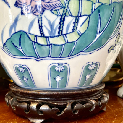 Massive chinoiserie ginger jar with bird and botanical design