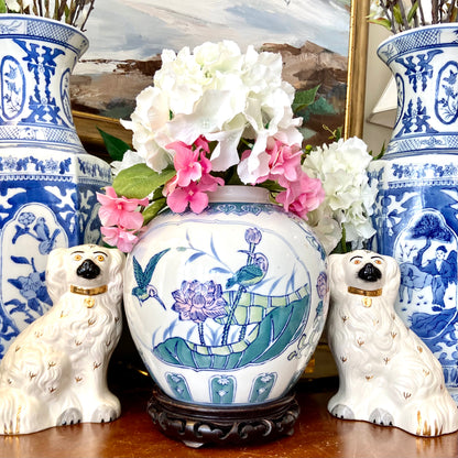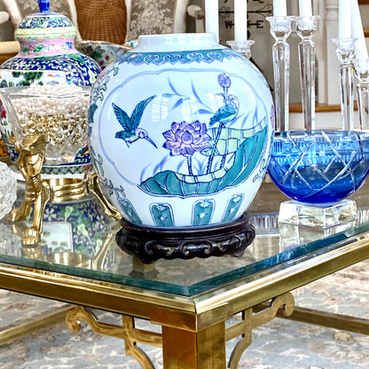 • Massive chinoiserie ginger jar with bird and botanical design