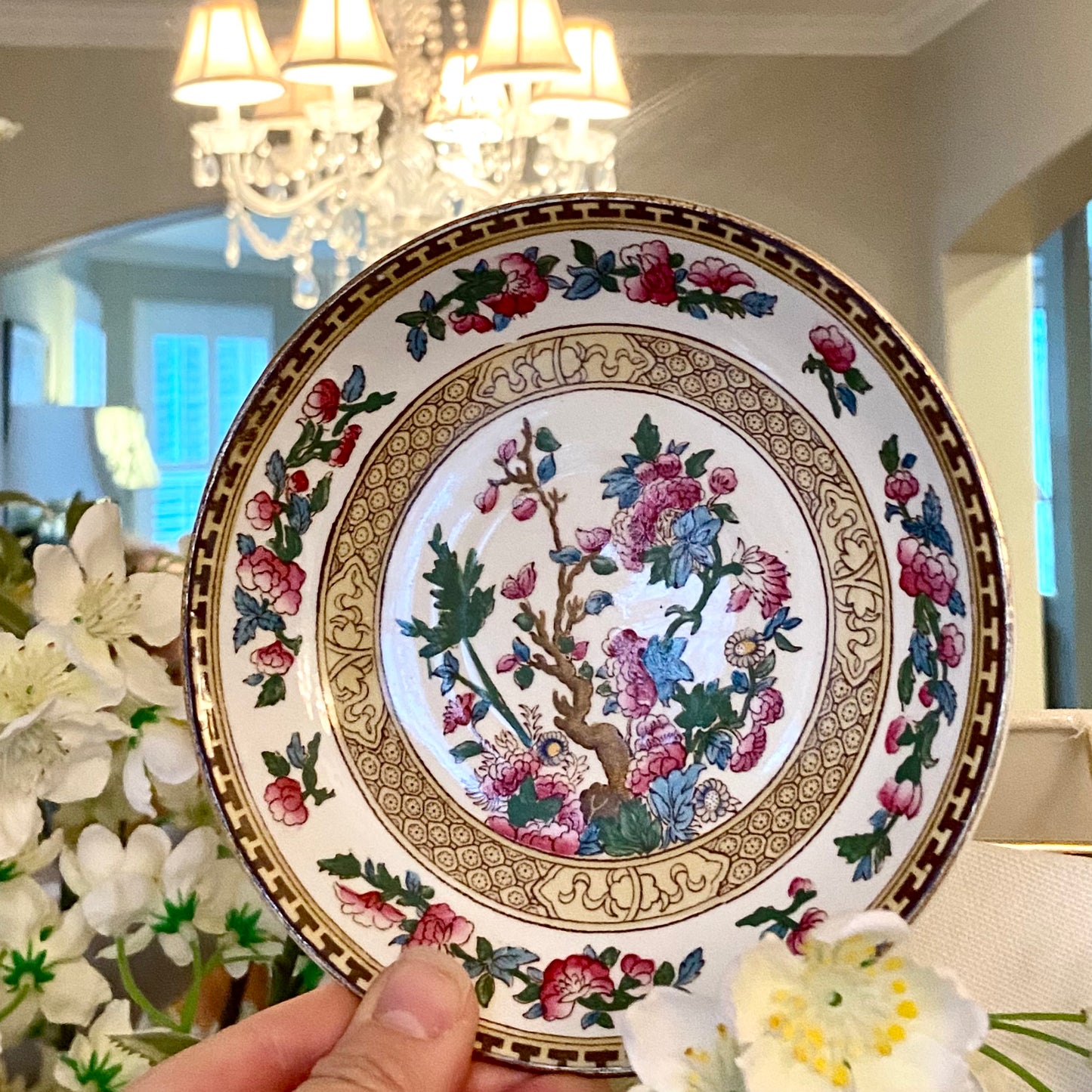 Older vintage Indian tree trinket dish porcelain saucer (sold seperate) - Pristine!