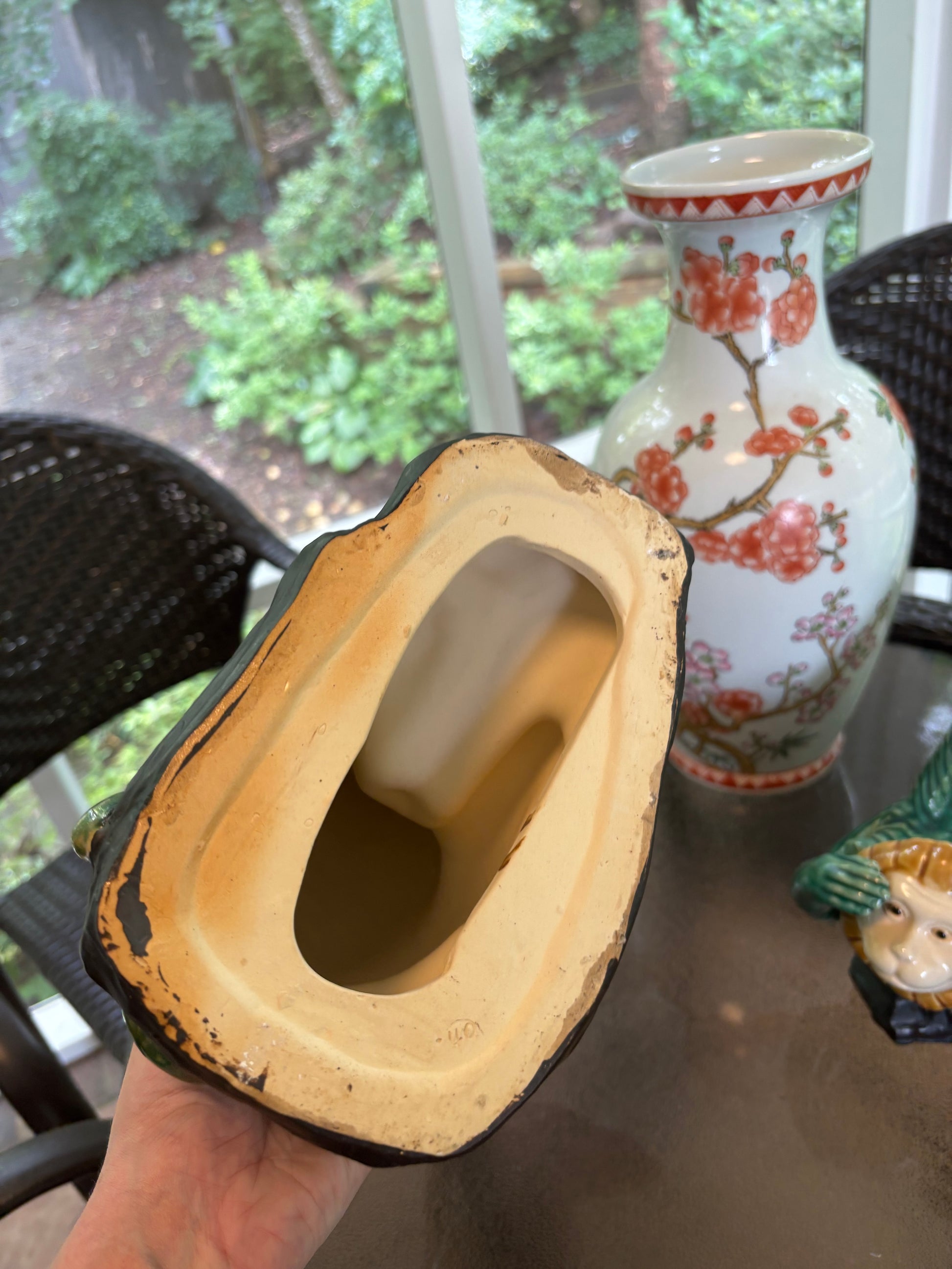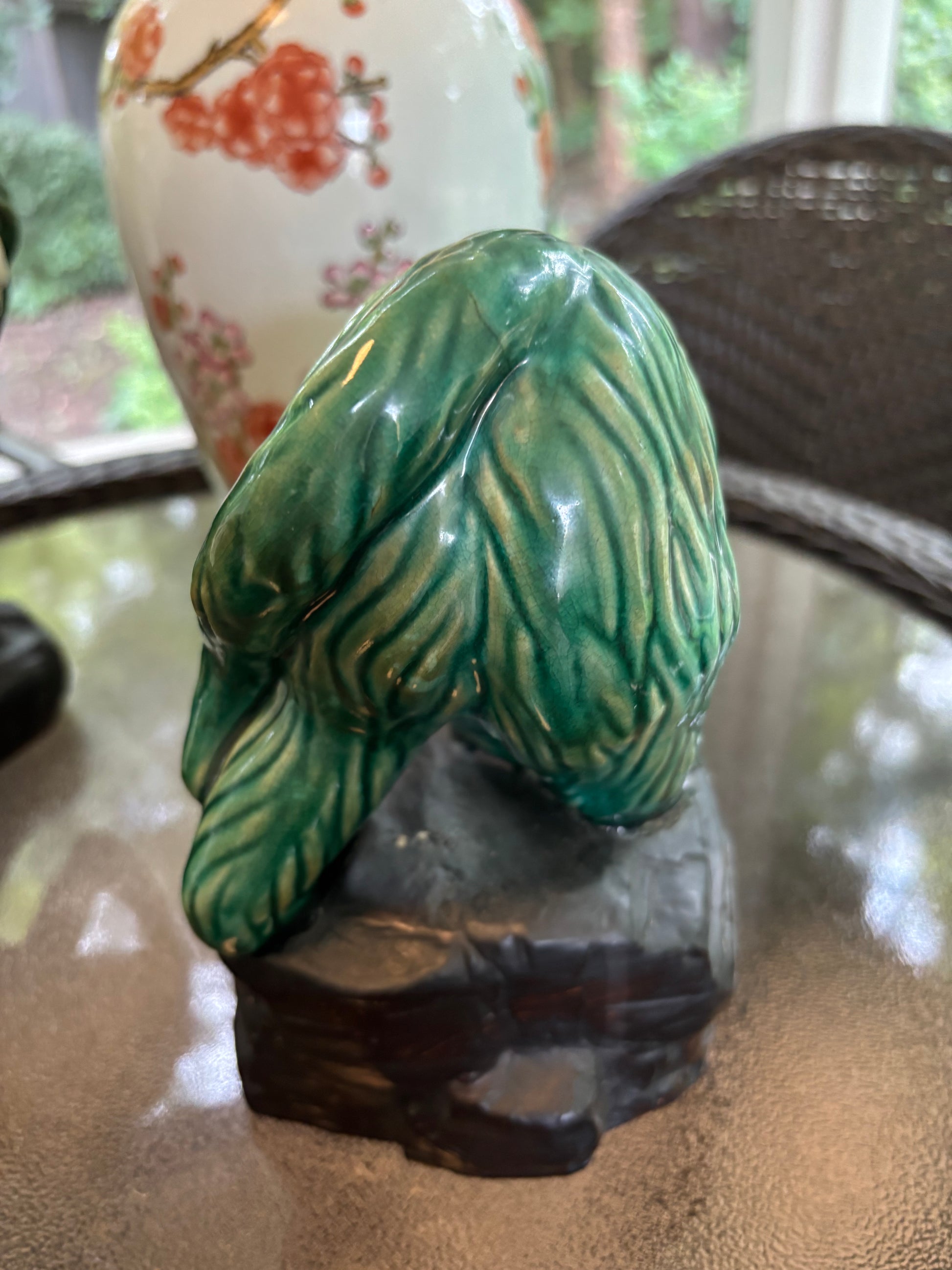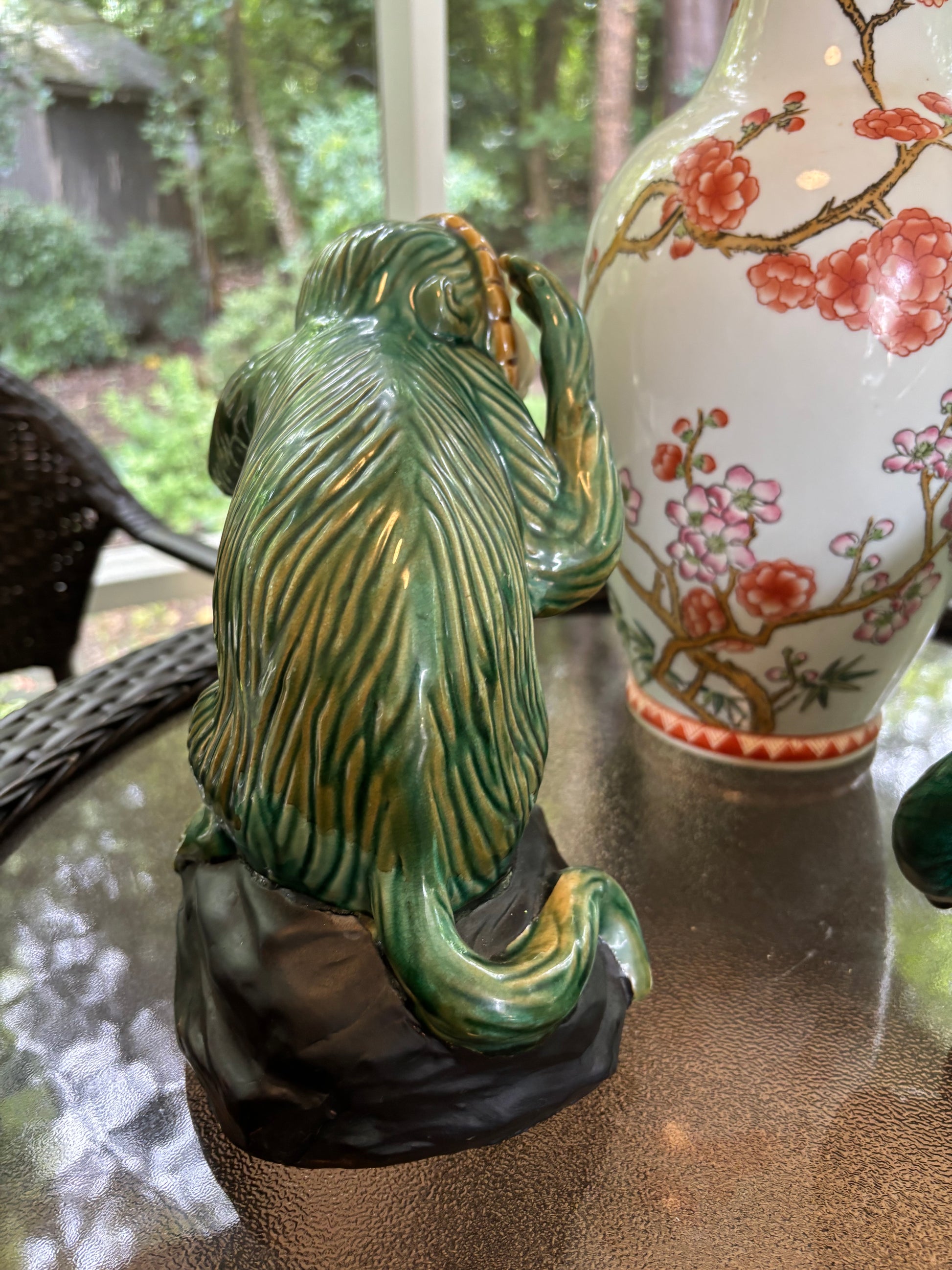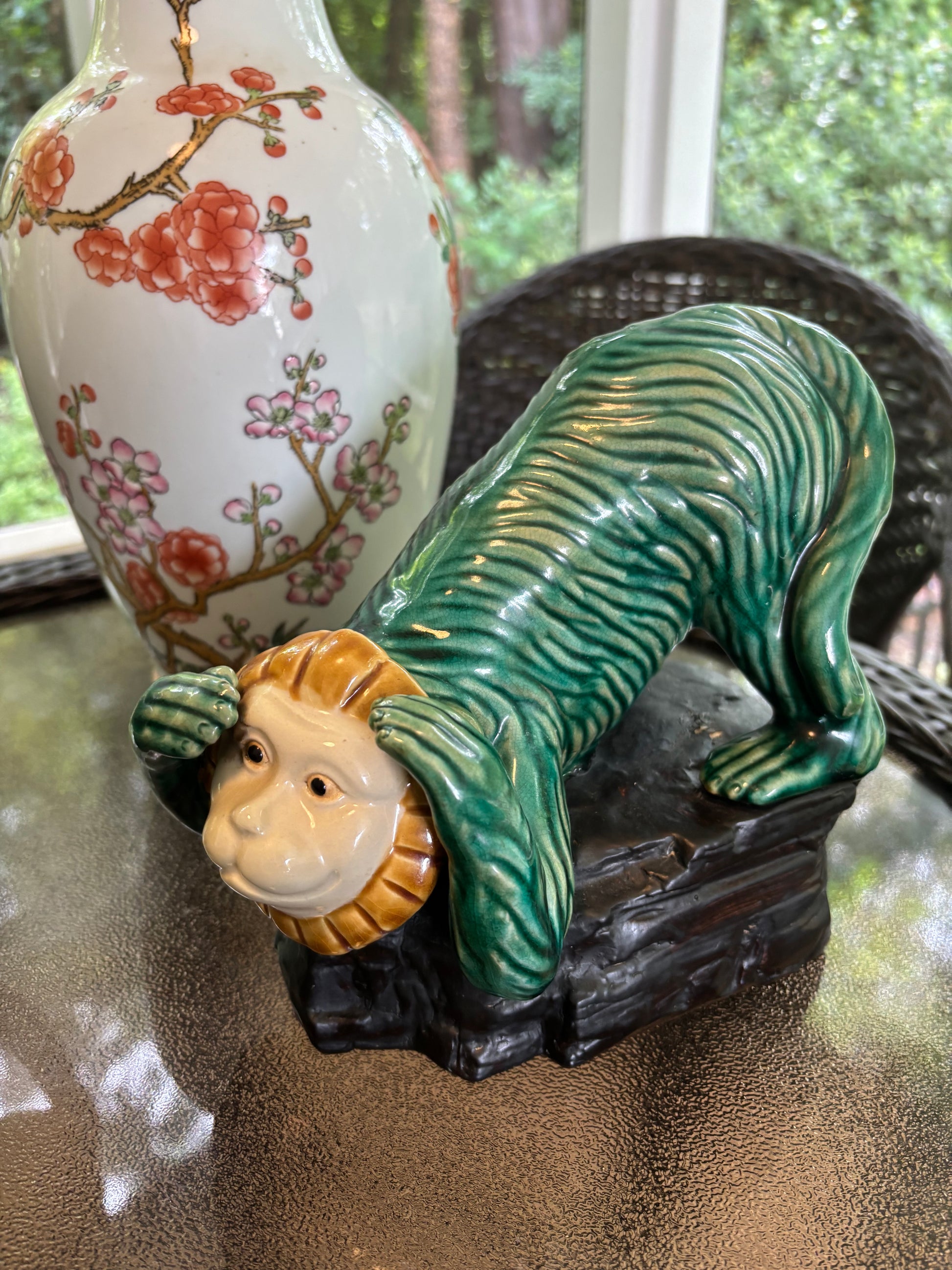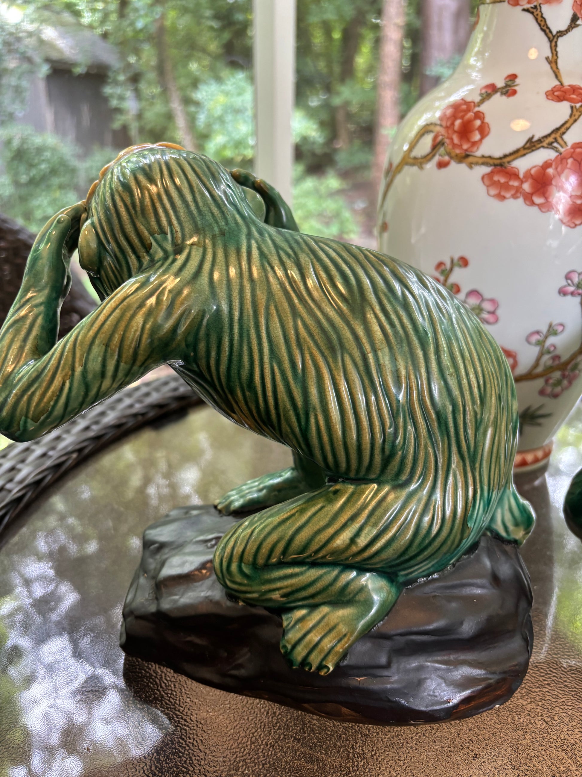 Precious pair of hear no evil, see no evil monkeys! π π These are in beautiful condition! Measures 8 3/4β x 8β and 8β x 9β. Perfect for a shelf or mantle! Tiny peeling of paint under monkey on rock.