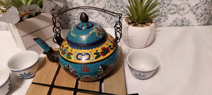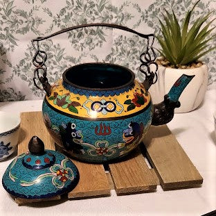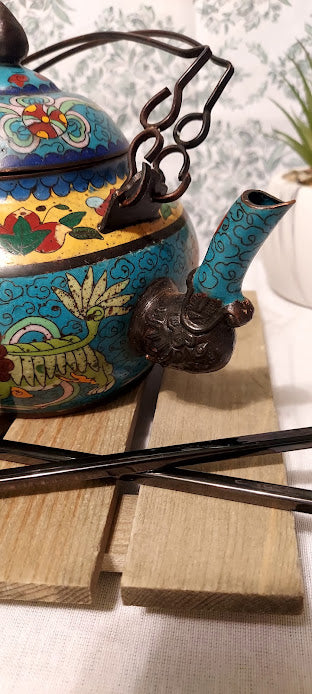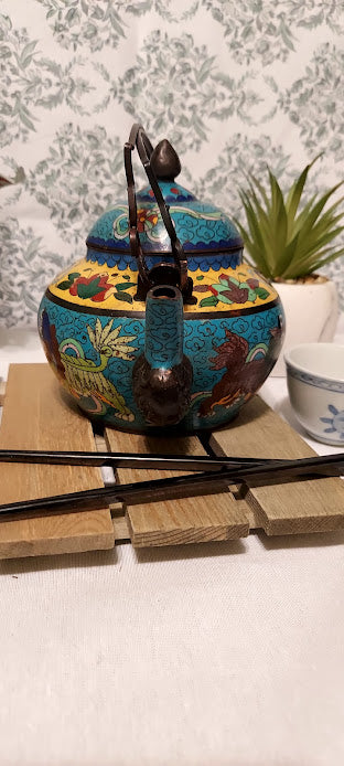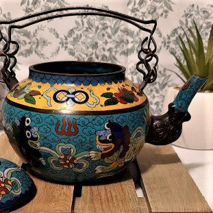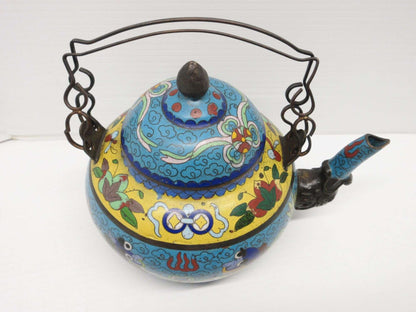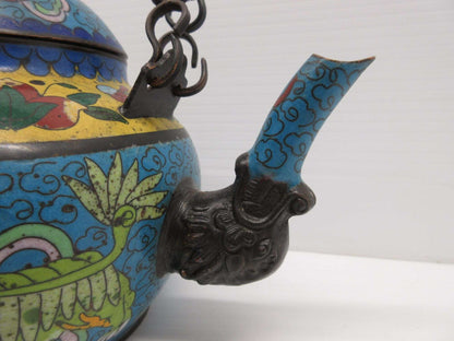 Explore a rich cultural heritage with this Older Chinese Cloisonne Enamel Metal Teapot! Accented with an elegant Foo Dog Lion spout, this colorful piece stands 5 1/4"H with lid. Step into history with this special find, in excellent condition!