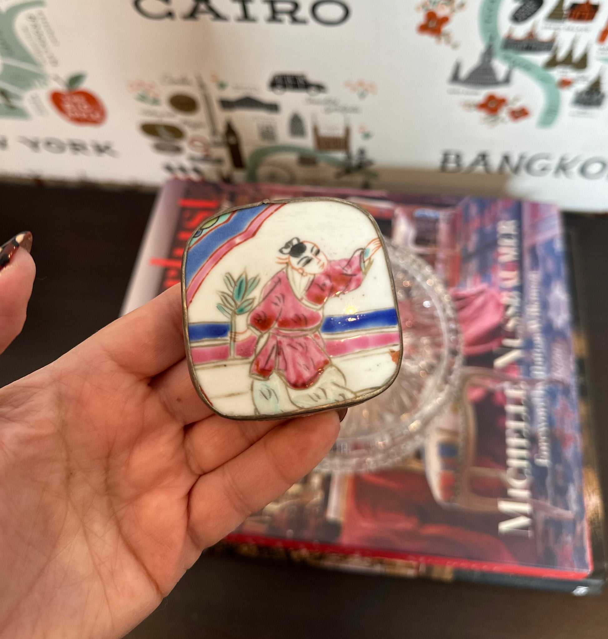 Small Famille Rose Medallion Shard Box, 2.25"