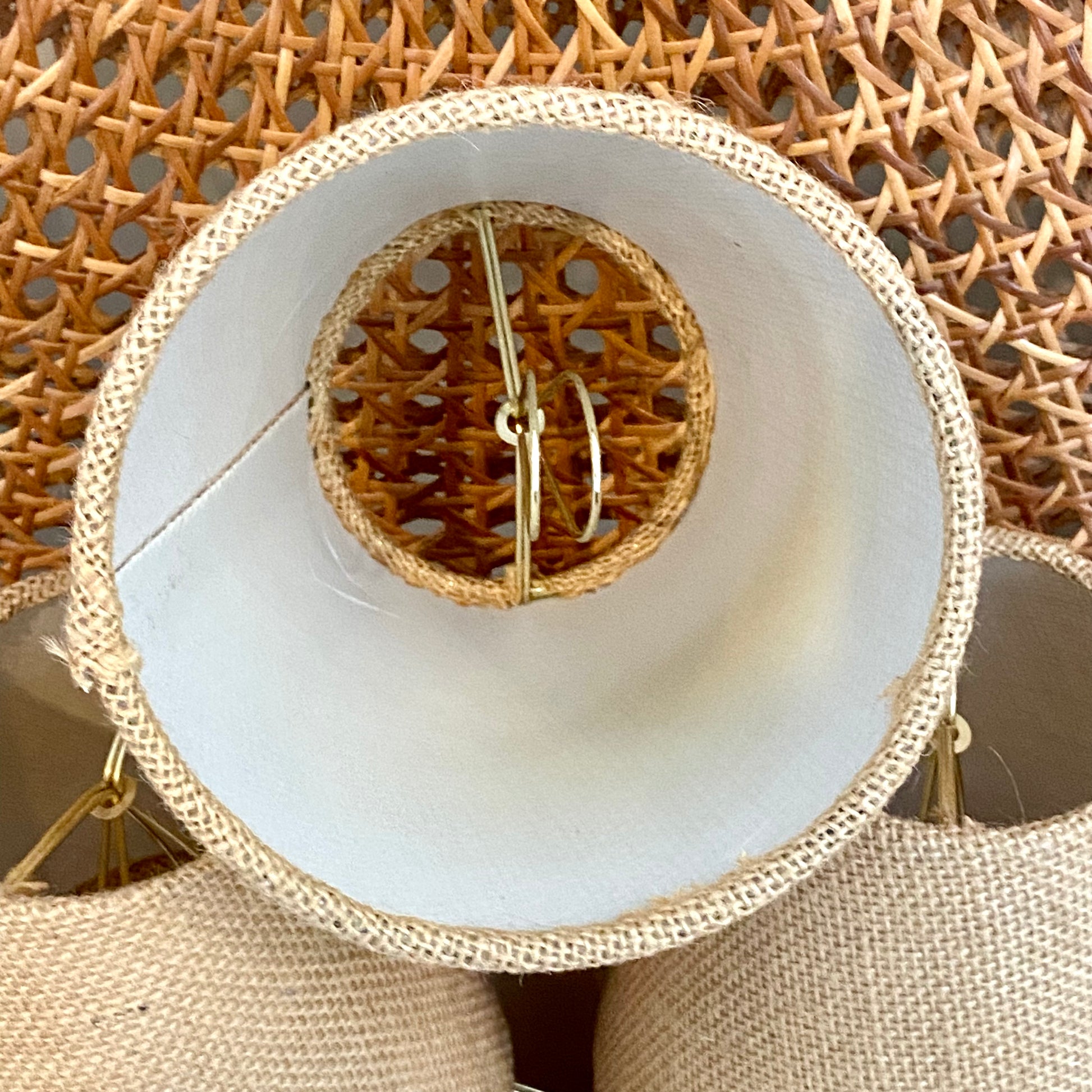 - Set of 6 boho chic beige burlap chandelier empire shades