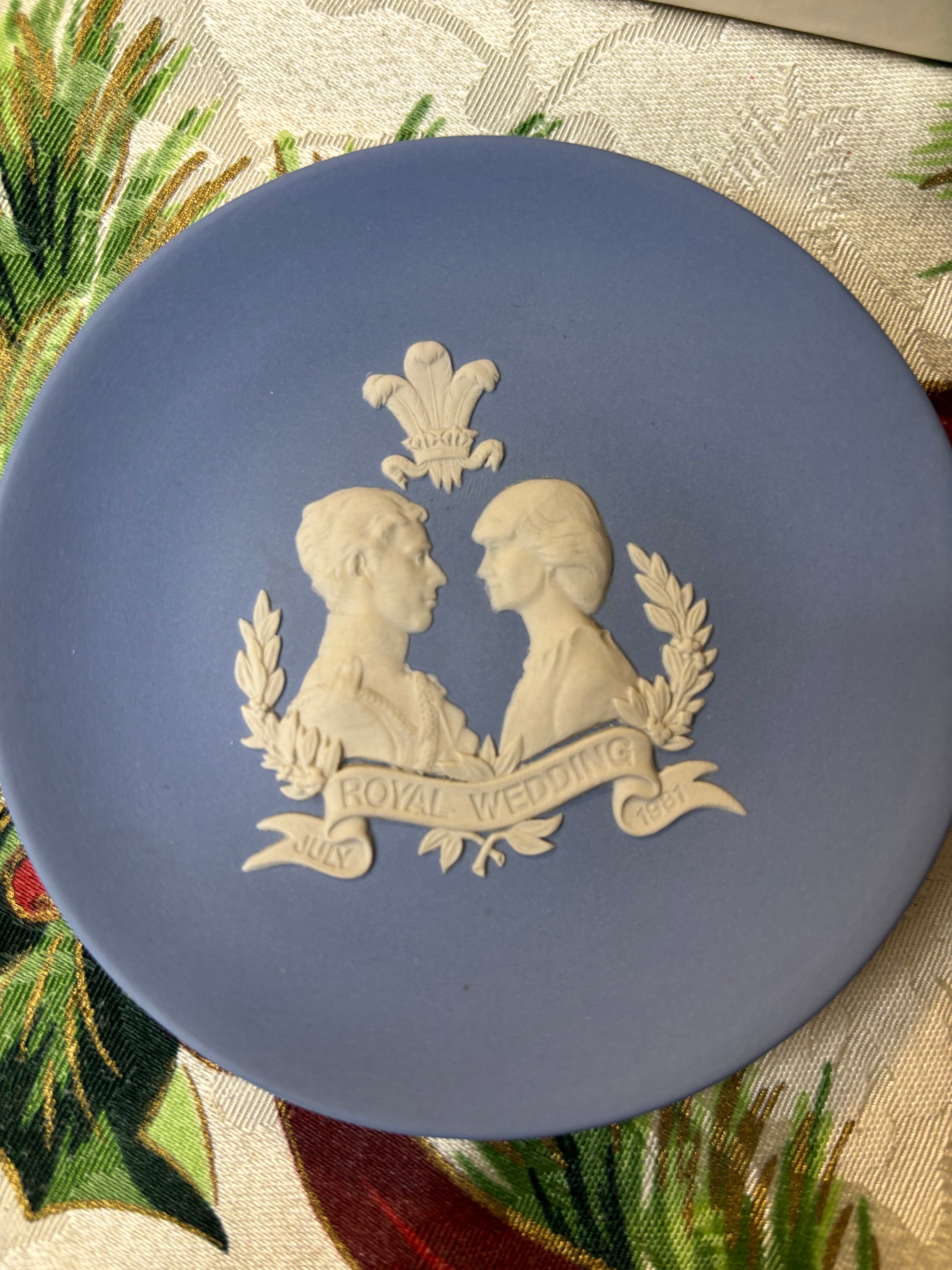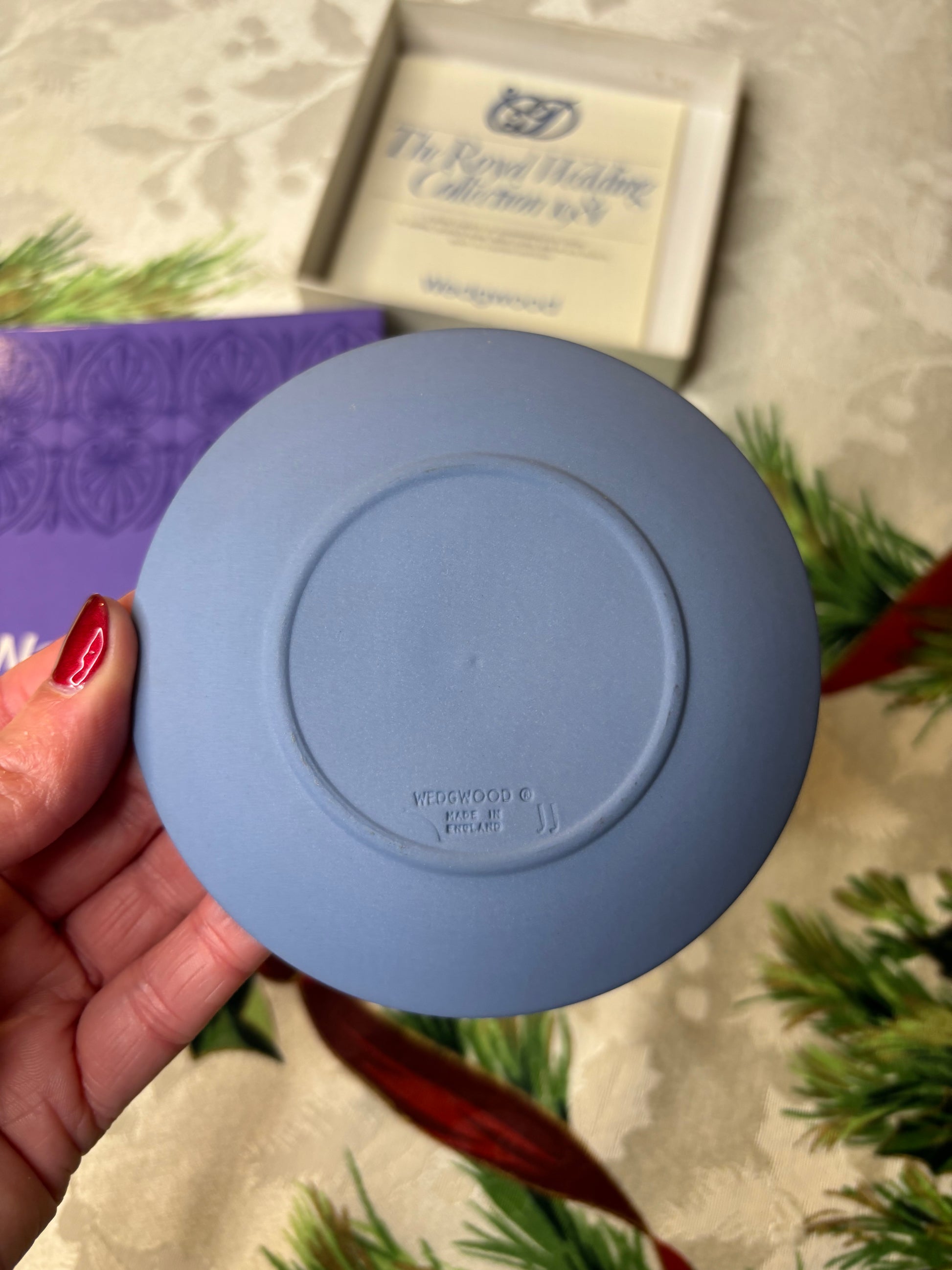 Wedgwood Royal Wedding Jasperware blue and white trinket dish! Will come with original papers and box! Measures 4 1/4” in diameter.