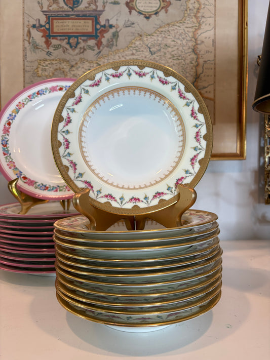 Antique 1890’s - Set (12) Cauldon Dinner Plates, 10”D - Pristine!