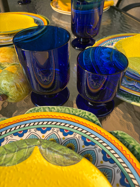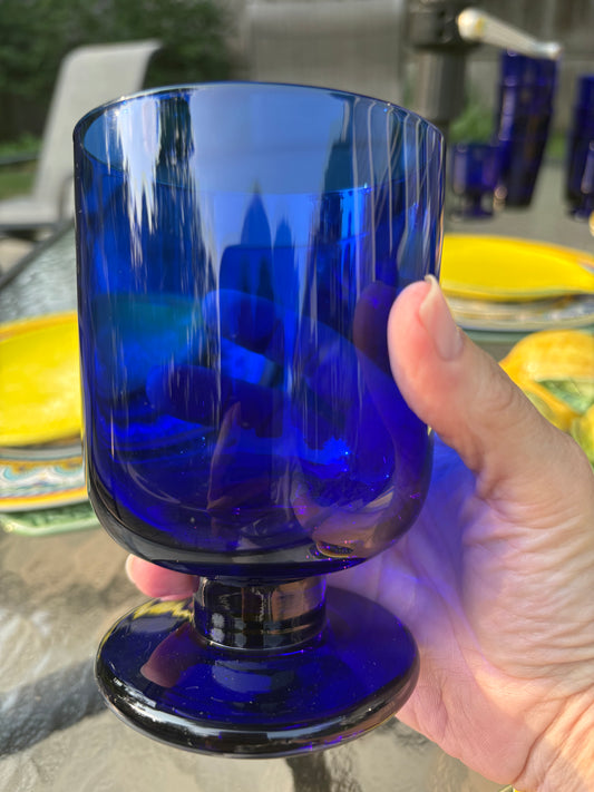 Set (4) Colbalt Footed Glasses Large