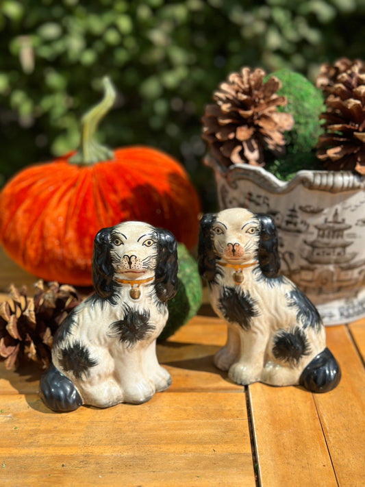 Danny’s Fine Porcelain: Black/White, 6” Tall Mantle Spaniel Dog Pair