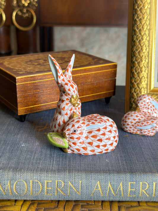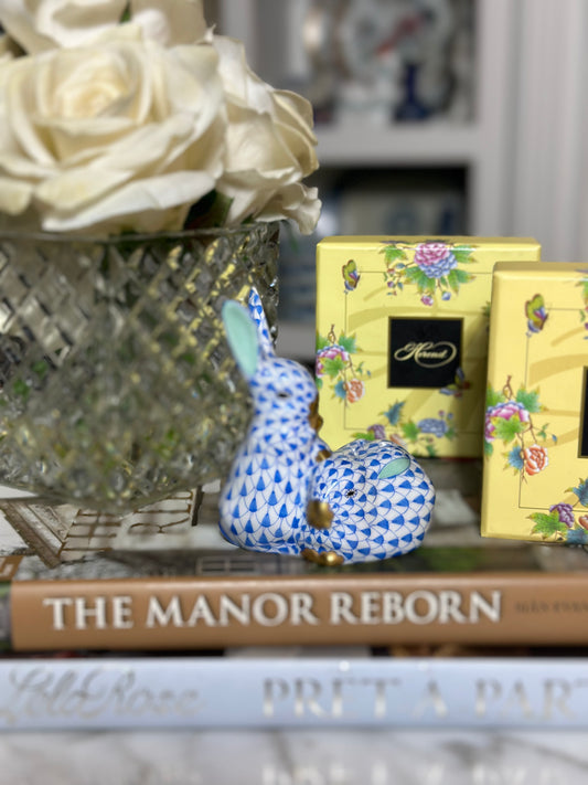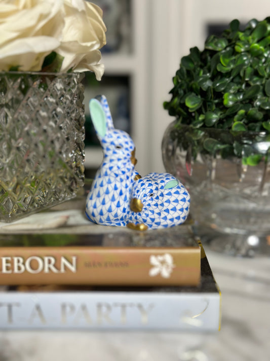 Herend Blue Fishnet Bunny Rabbit, One Ear Up, 4” tall, Retail $340 - Pristine!