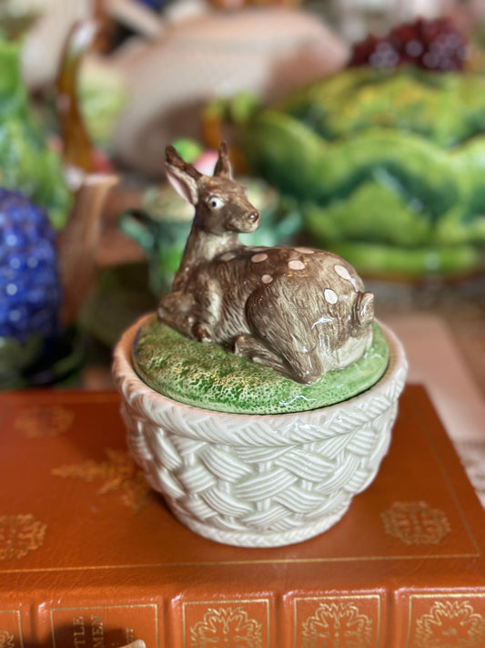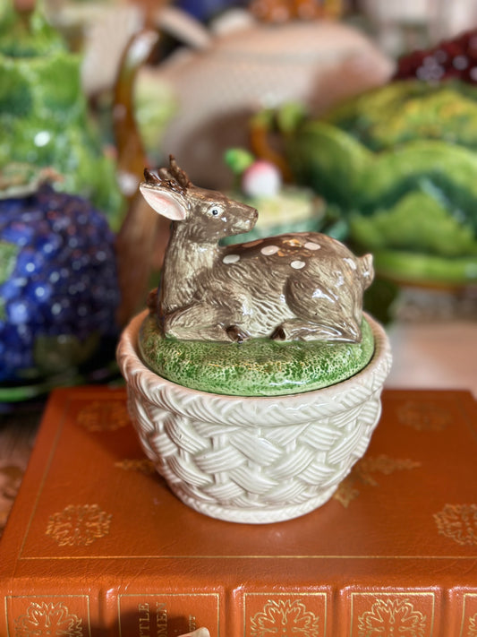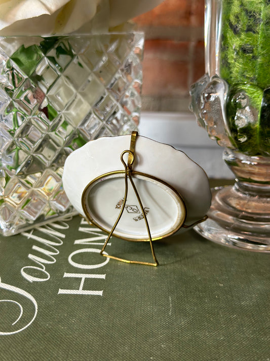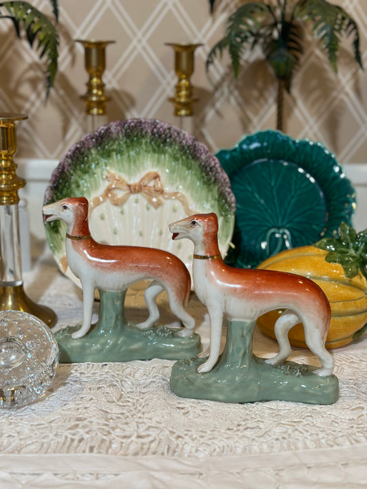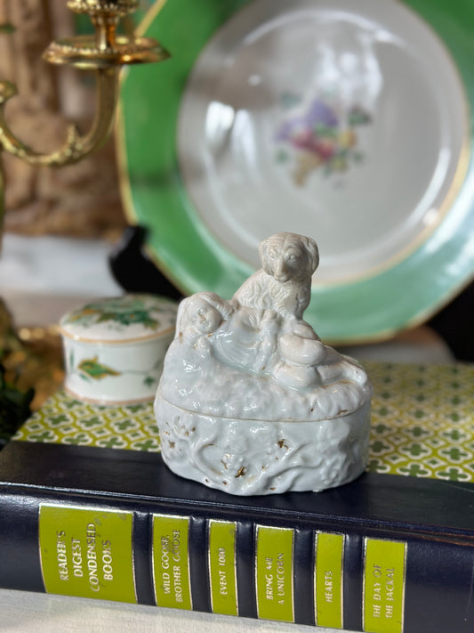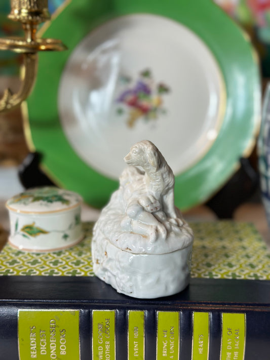Tobacco Leaf Porcelain Mini Spaniel Figure, 3” Tall