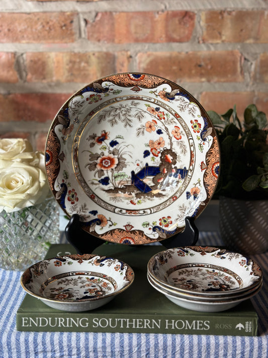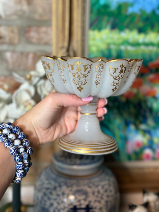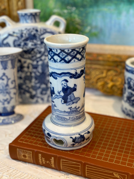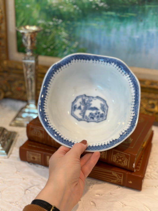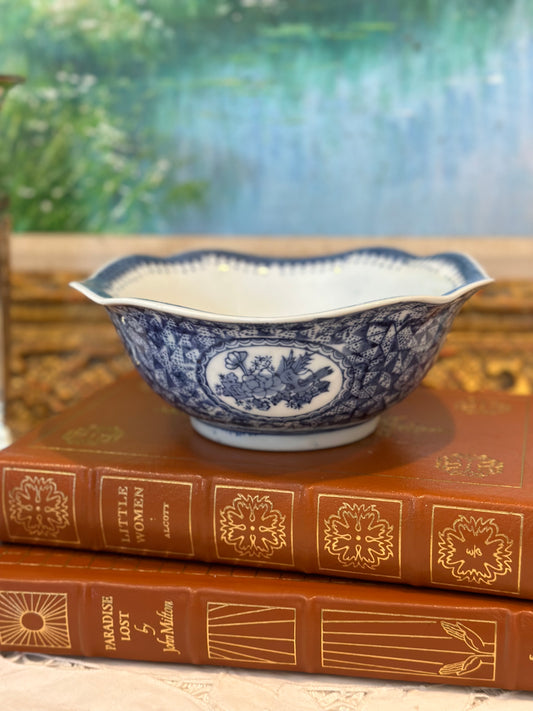 Blue & White Porcelain Pagoda Scalloped Basin, 12x8x7 - Pristine!