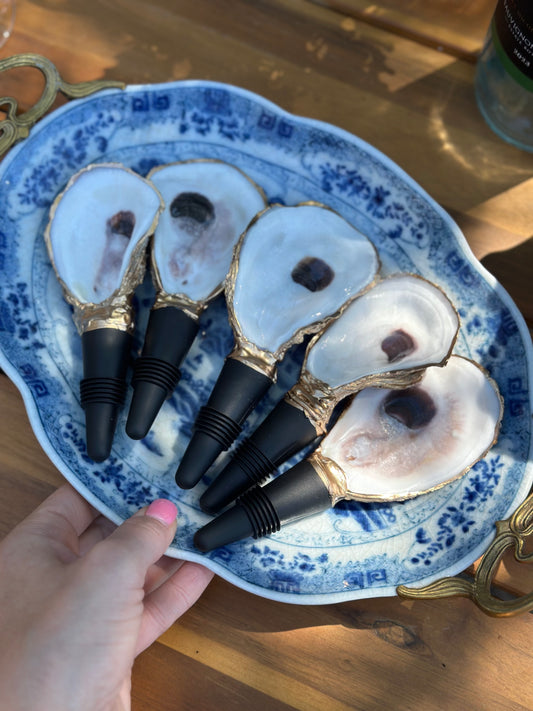 Artisan-Made, Gold Dipped Oyster Wine Stoppers, 3-4” Long