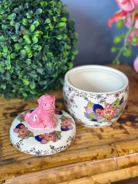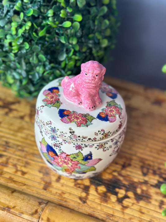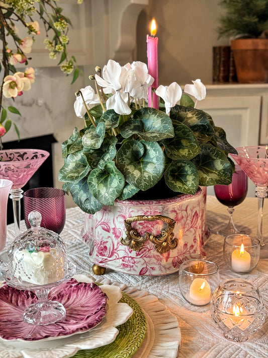 Danny's Fine Porcelain - Pink/White Pagoda Porcelain Jardinière Planter, 7" Tall, 8"D - Pristine!