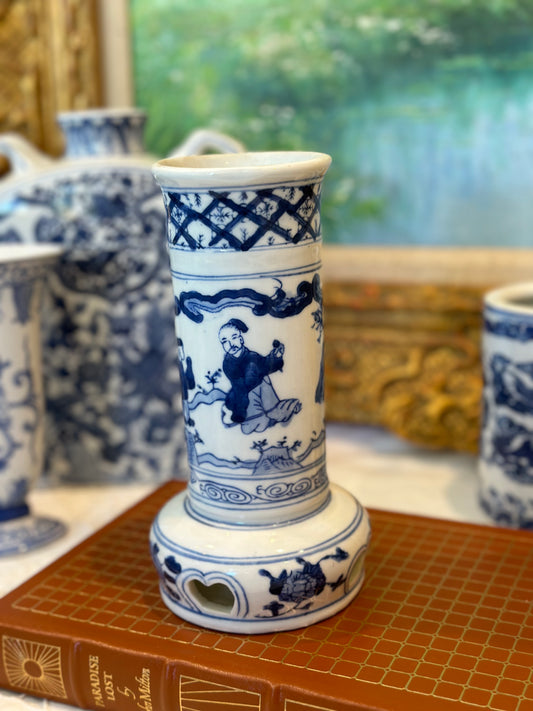 19" Tall, 8.5Lx8.5W Tulipere Hexagonal Blue and White Single Vase