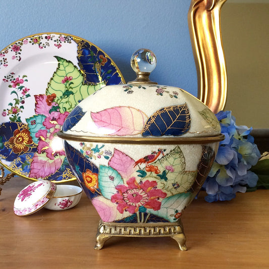 Danny's Fine Porcelain - Bronze Rust Porcelain Footed Square Dish, Bird Embellished