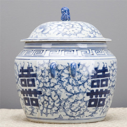 Blue & White Peony Floral Desk Lamp: 12L X 12W X 19H,Small Tea Jar Lamp