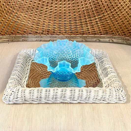 Vintage White Woven Rattan rectangular Mirror,