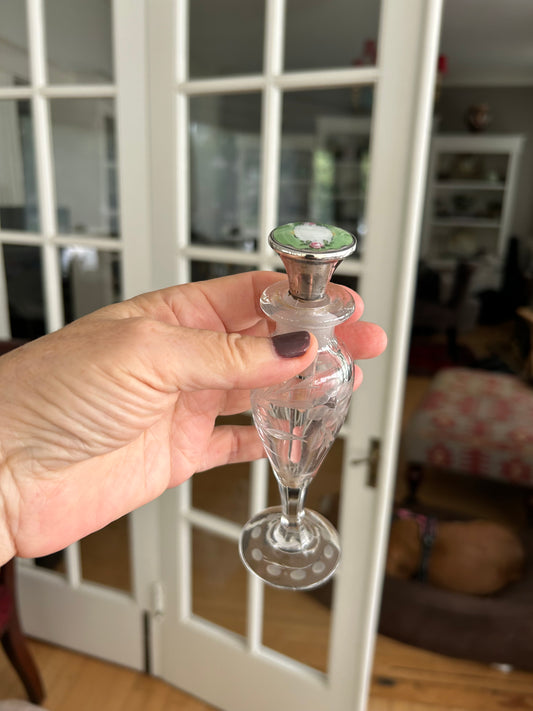 Hand Engraved Crystal Perfume Bottle with Sterling Guilloche Enamel Stopper for 165 Only one Available!