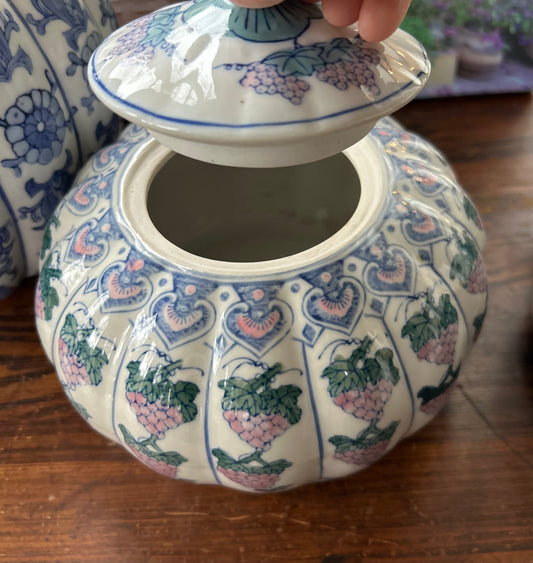 Adorable Chinese Blue White and Pink Pumpkin Chinese Ginger Jar