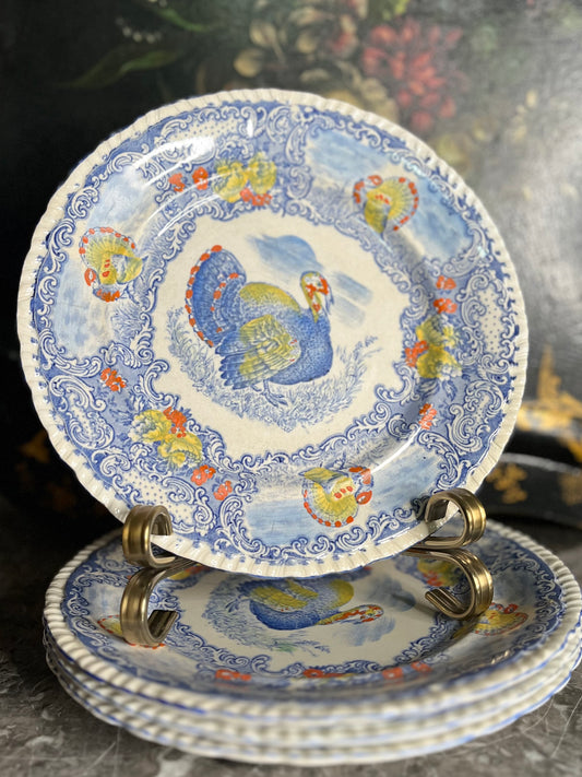 Fabulous Set of 4 Vintage Crownford Staffordshire Brown Calico Bone Dishes, 6.5"