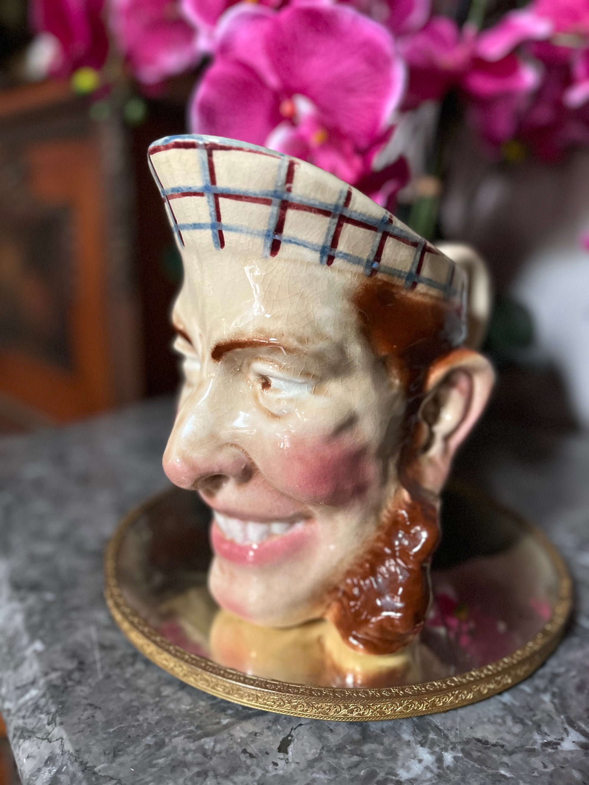 Antique French Whimsical Sarreguemines Fisherman Jug