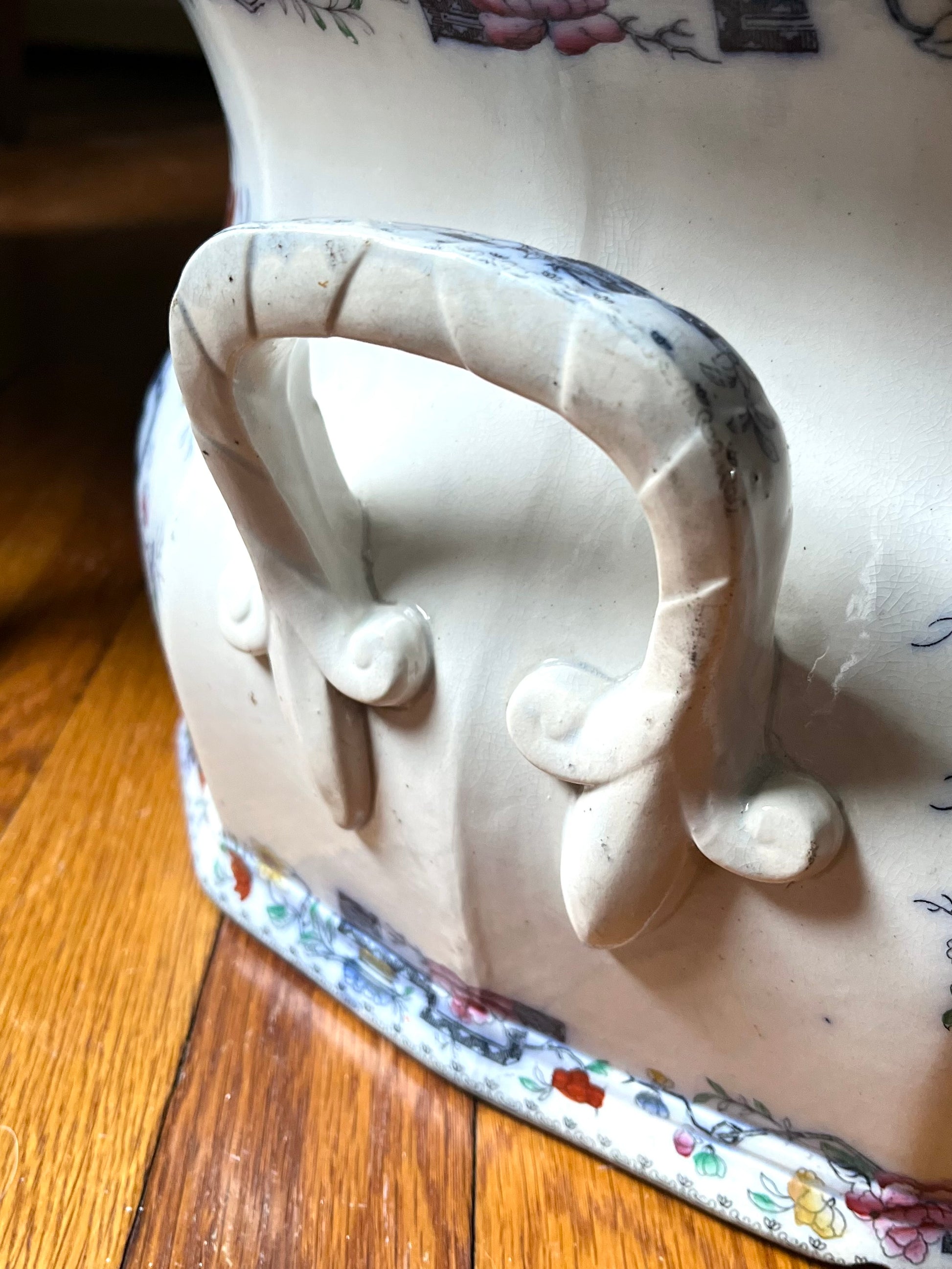 Exceptional Antique 1860-1890 Ashworth Bros. England Large Indian Tree Transferware Planter / Cachepot / Footbath