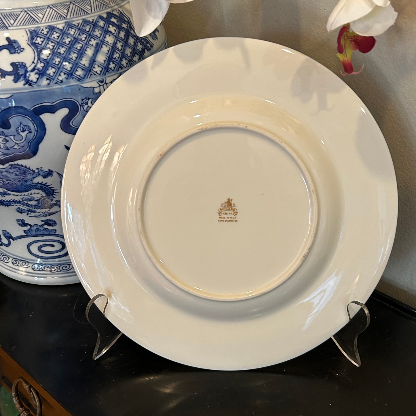 This stunning hand-painted Pikard fruit centerpiece plate (10 d) boasts a gorgeous design by a talented designer. The piece showcases intricate details and expert craftsmanship, making it a one-of-a-kind addition to any collection. With no chips and careful hand-painting techniques, this plate is a truly beautiful and unique item.