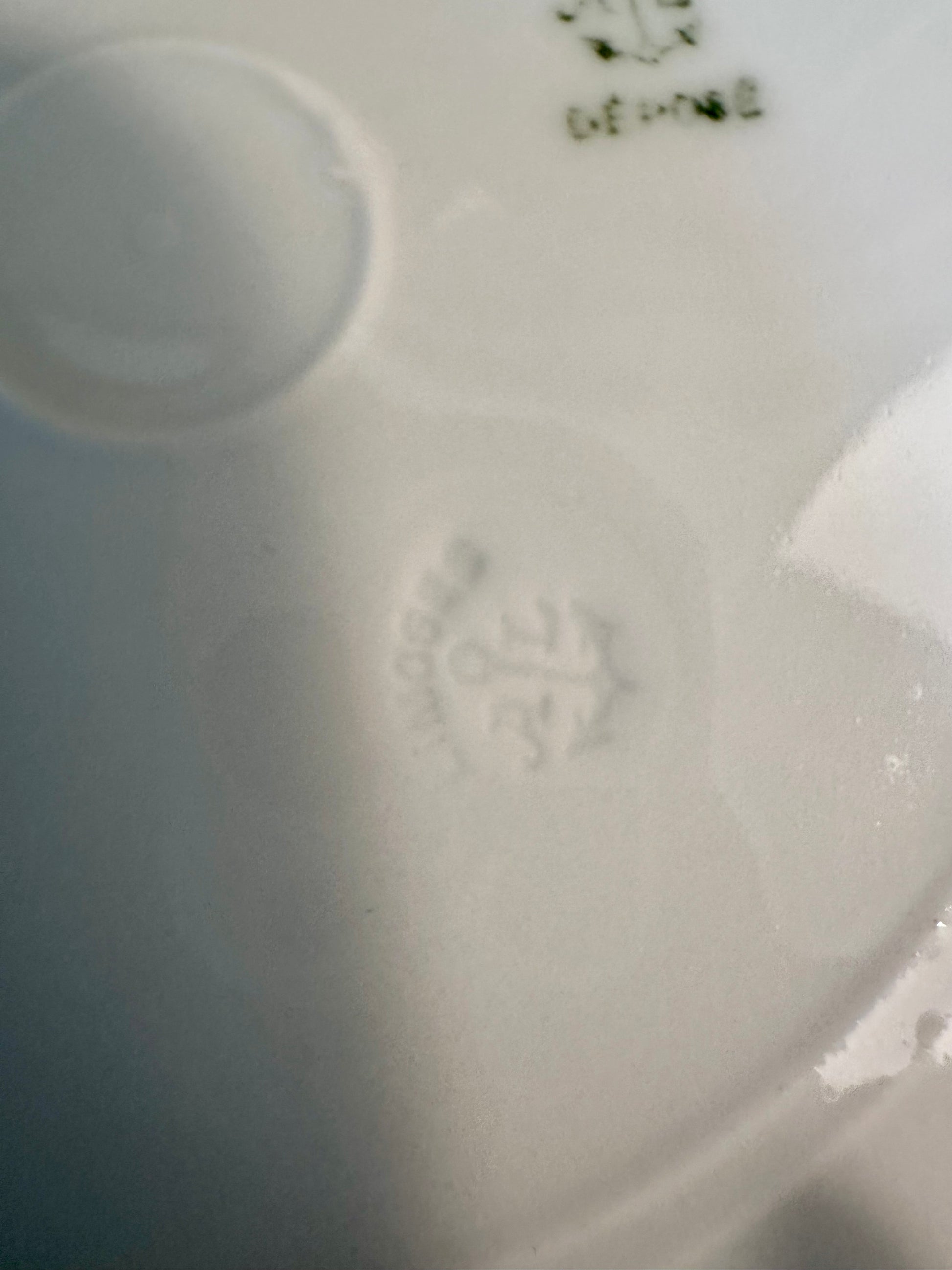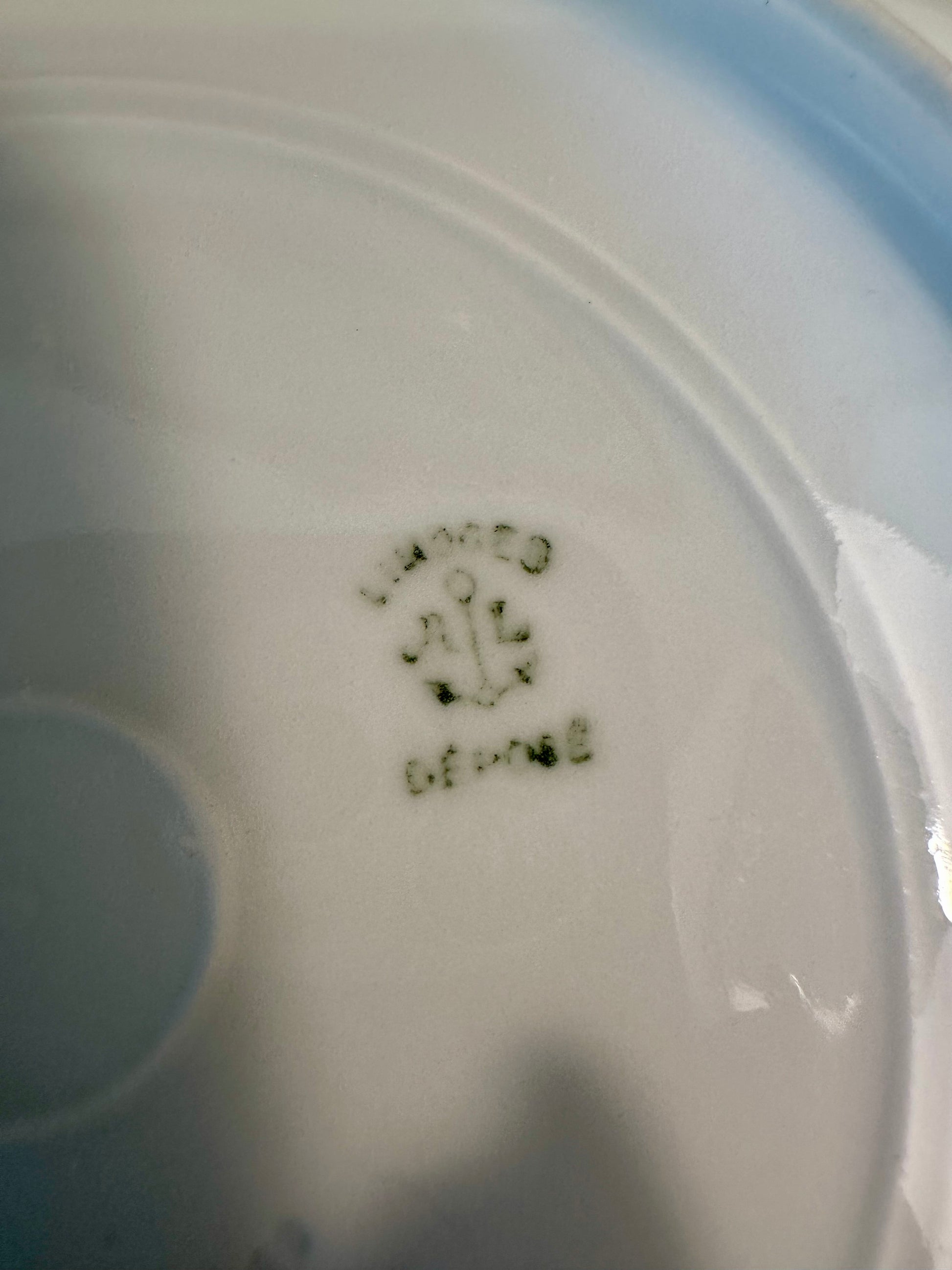 A rare pair of antique French hand painted and gold gilt cabinet plates produced by Alfred Lanternier in Limoges, France, circa 1891-1914. These hard to find plates were made during the Art Nouveau period as evidenced by the organic reference to nature in the hand pianted florals and are true to Lanternier’s style at this time. They're stamped on the backs with "Limoges AL (with an anchor between the A and L) Depose" in green and also impressed with the same mark. This mark was used between 1891-1914. These are in excellent condition for their age with no chips or cracks and only minimal wear to the gold gilding. These are beautiful works of art and would be perfect displayed in a cabinet or plate wall. Selling the pair together as a set.