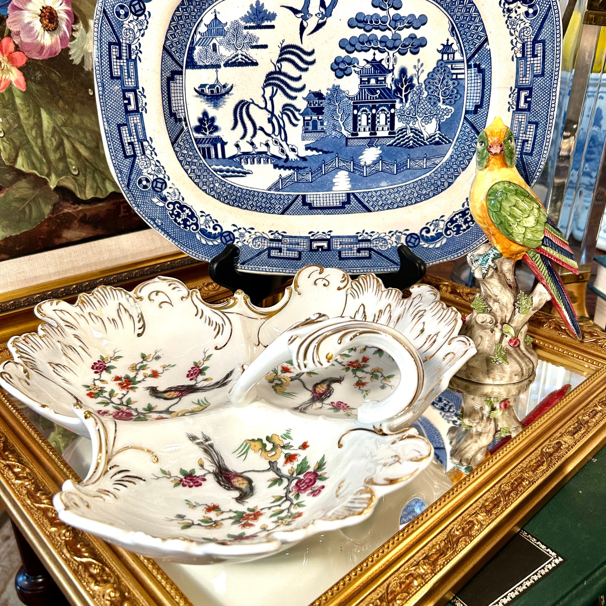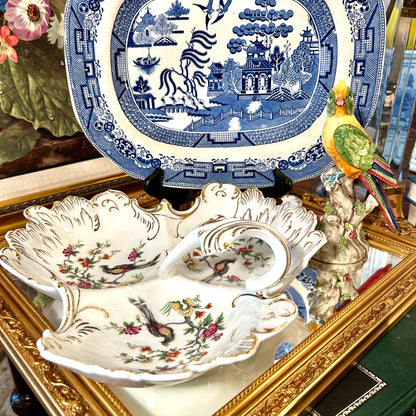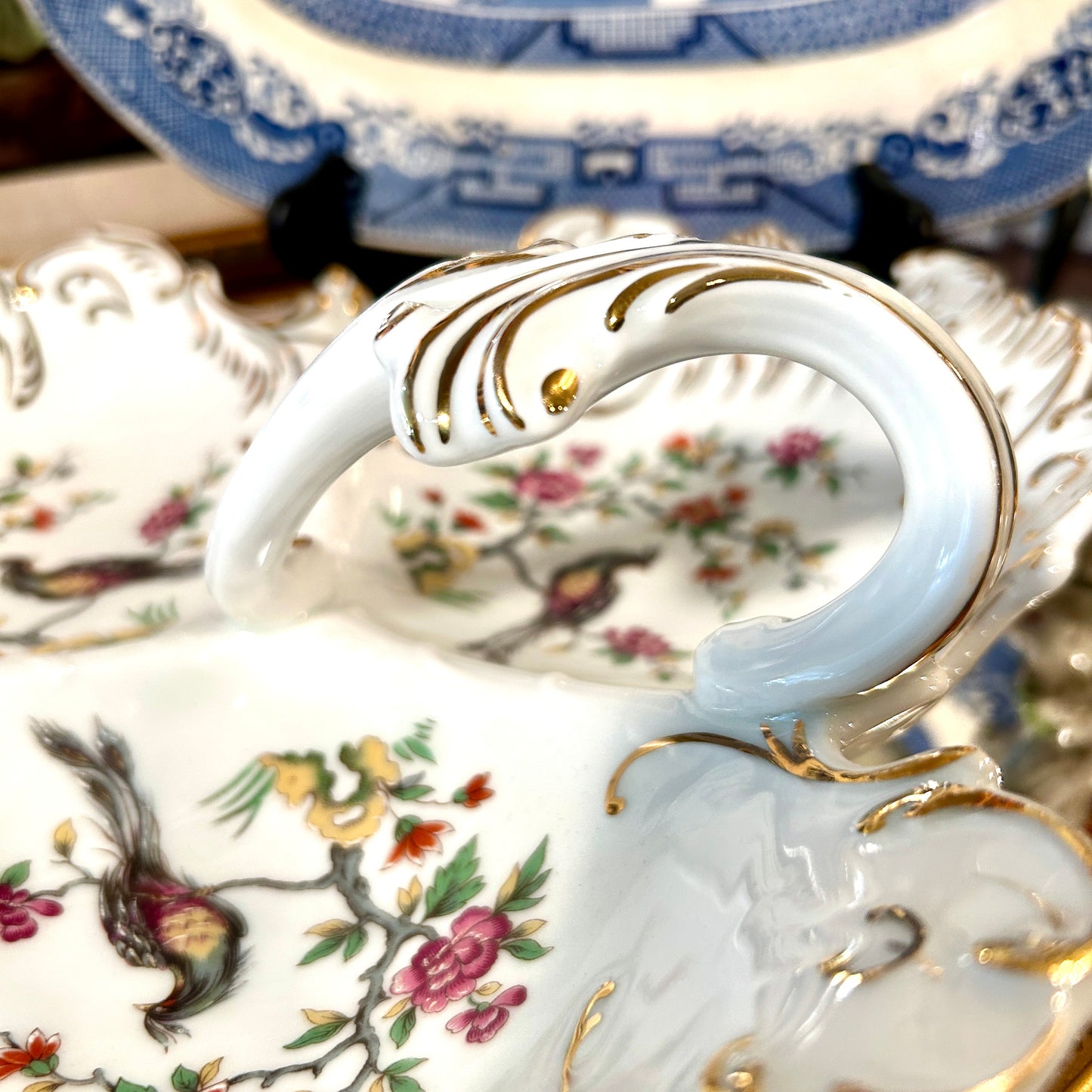 Stunning bird & botanical porcelain 3 section platter Limoges France.