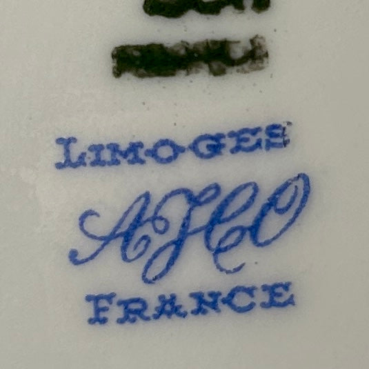 This exquisite Limoges France 3 section platter features stunning bird and botanical designs and a beautiful gold scalloped edge. Its dimensions are 11 inches in diameter and 4 inches in height. Despite its delicate appearance, it is durable with no chips and is stamped for authenticity.