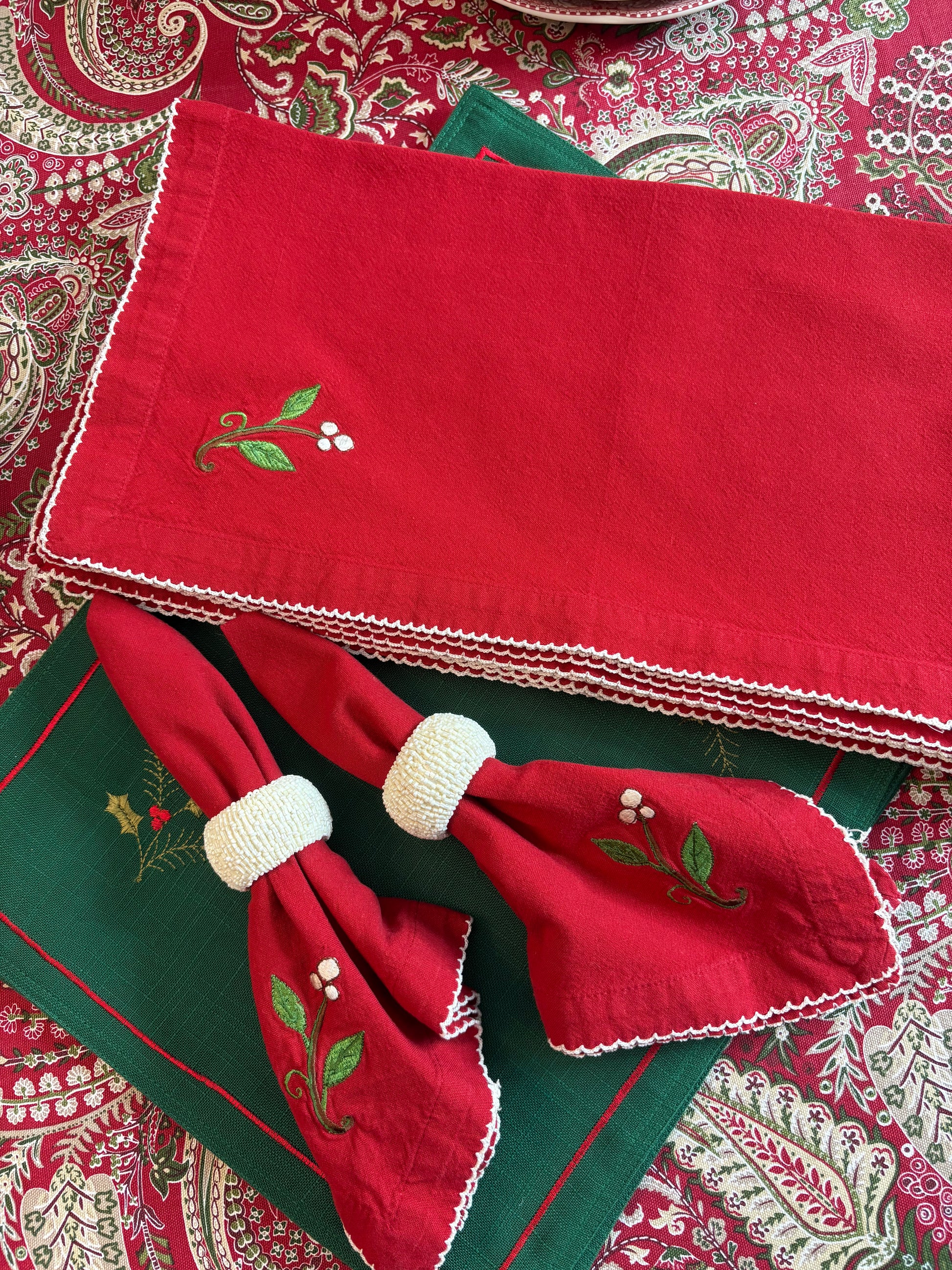 Set (12) Vintage Holiday Napkins with contrast stitching