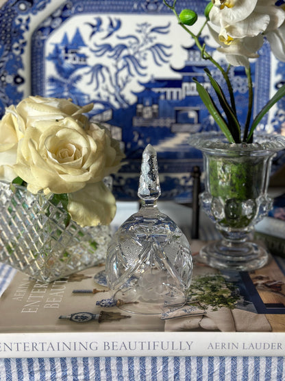 American Brilliant Crystal Bell W/ Bow Pattern, 8.5" Tall - Pristine!