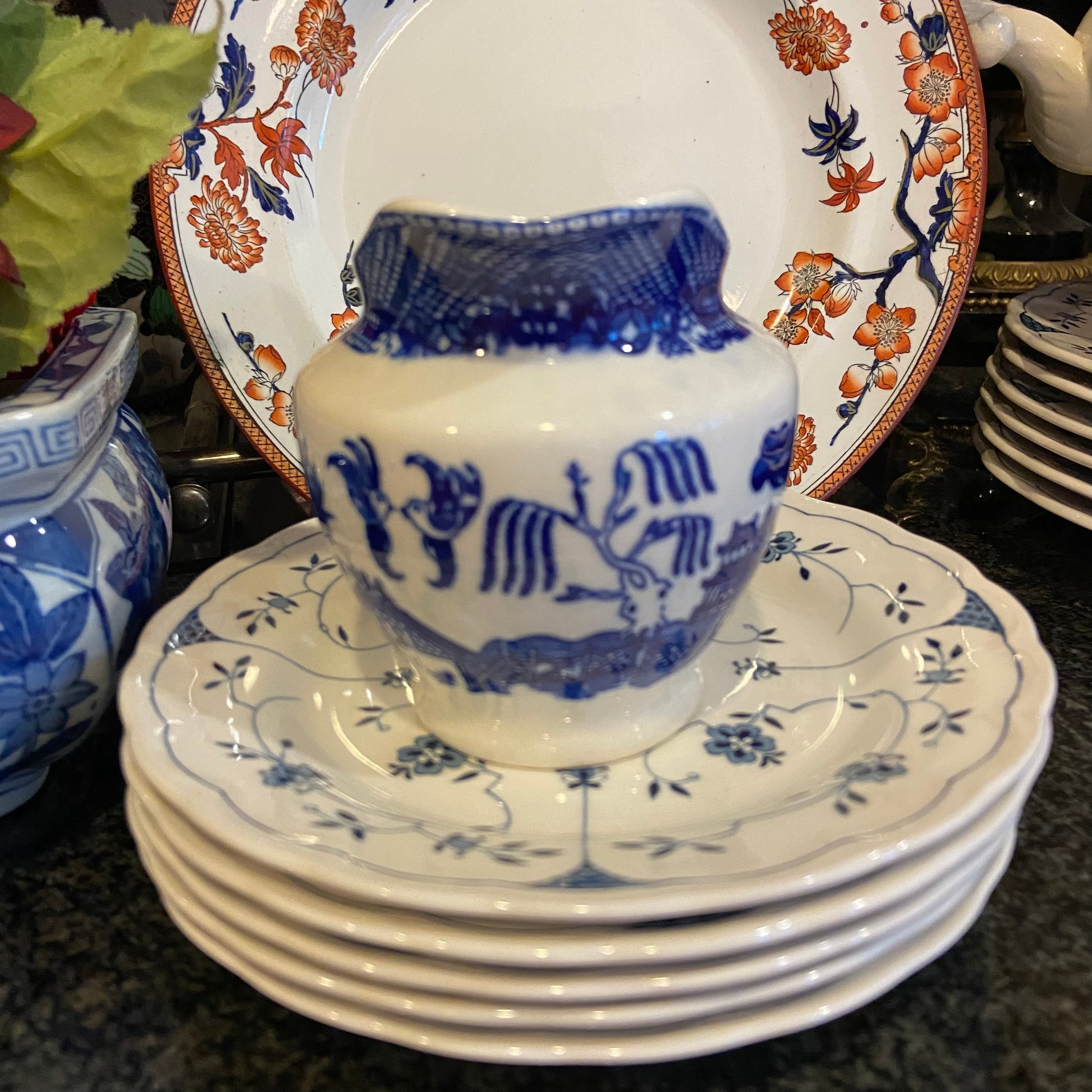 Vintage blue willow blue & white porcelain gravy boat or creamer