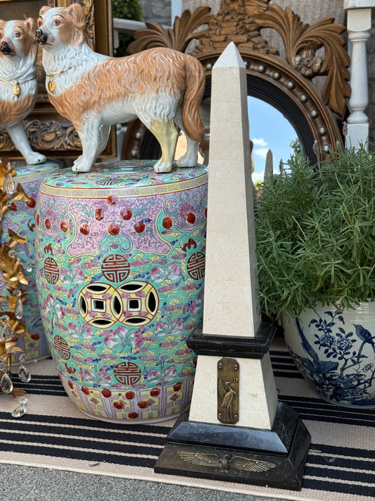 Maitland-Smith Marble & Brass Obelisk – Neoclassical Decorative Accent, Approx. 25” tall x 6.25”