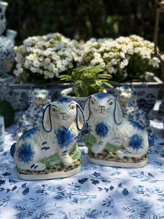 Danny's Fine Porcelain - Ceramic Bunny/Rabbit Figure Pair, Blue/White, 6x3" - Pristine!