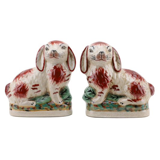 Danny's Fine Porcelain: Ceramic Bunny/Rabbit Figure Pair, Rust & White, 6x3" - Pristine!