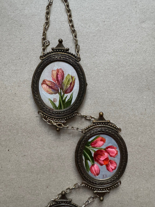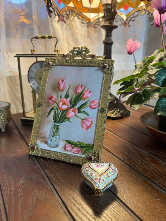 Pink tulips in antique jewel frame