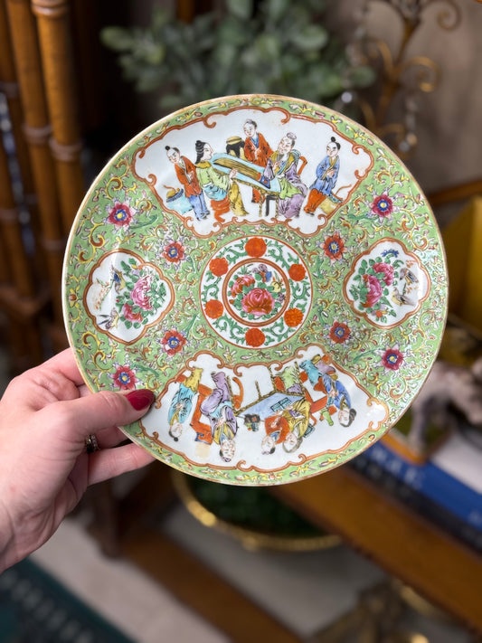 Antique Famille Jaune Canton Plate, 8.5” Porcelain, Circa 1850–1880