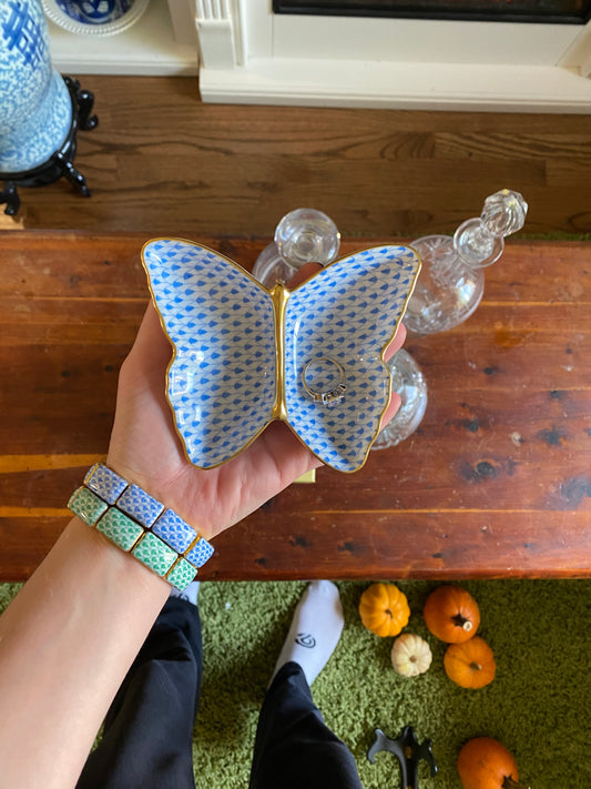 Herend Fishnet hand-painted porcelain with 24K gold: Butterfly Trinket Dish- 4.25″L X 1″