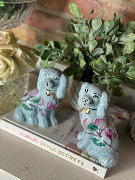 Danny’s Fine Porcelain Blue & White Spaniel Dog Figure Pair W/ Gold Accent (2 sizes to choose).
