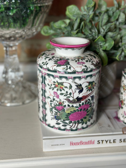 Danny’s Fine Porcelain - Pair of Porcelain Foo Dogs in Tobacco Leaf Pink | 7″ Wide