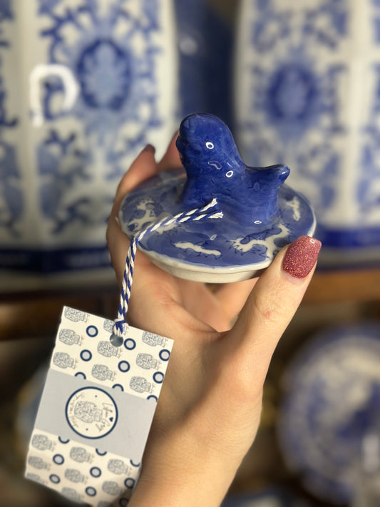 Danny’s Fine Porcelain - Blue & White, 10" Tall, Hand painted Planter/Pot Bird Design