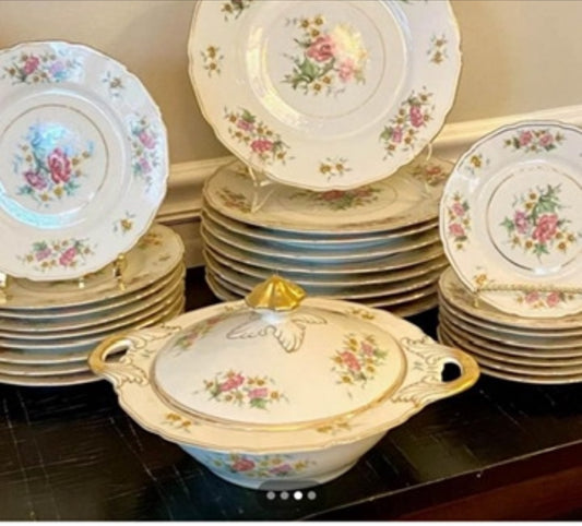 Vintage Set of 7 Colonial Homestead Dinner Plates By Royal