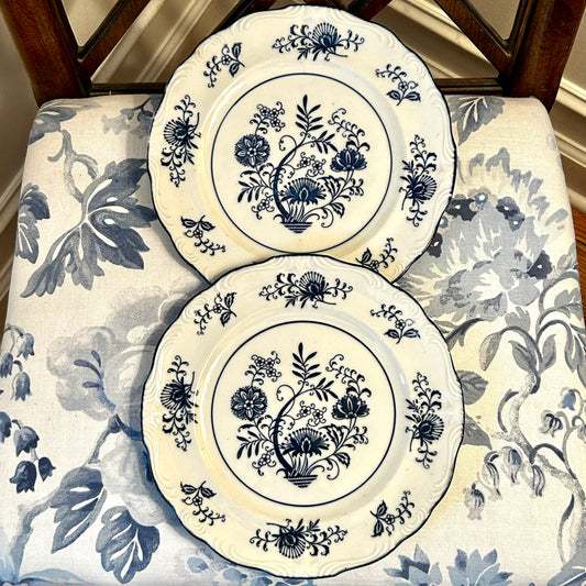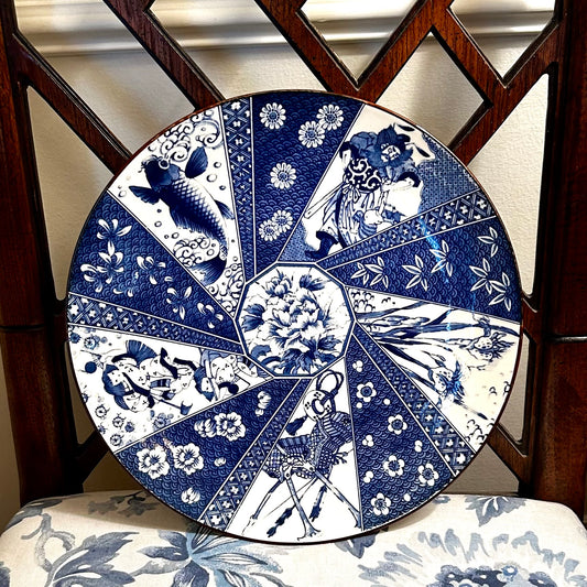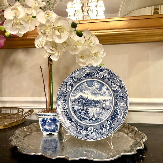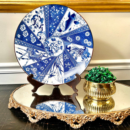 Vintage blue and white porcelain chinoiserie designer octagon plate