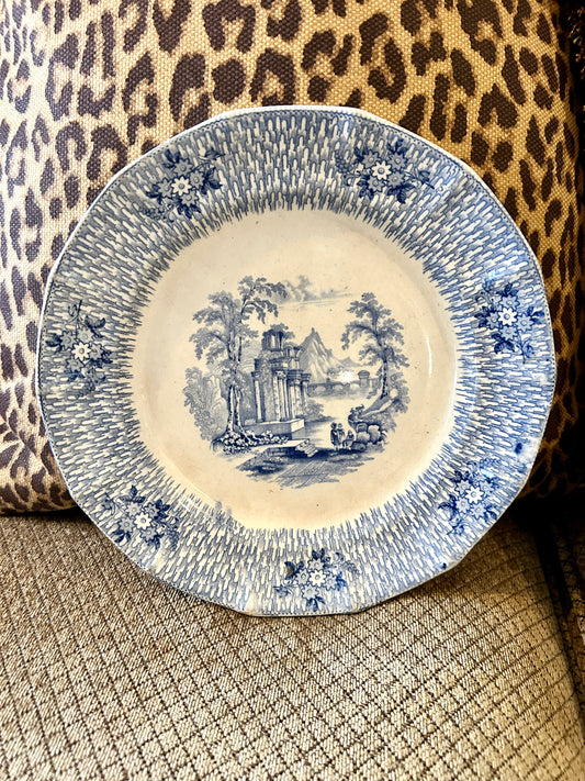 Rare English James Edwards Ironstone Transferware Porcelain Corinth Dinner Plate