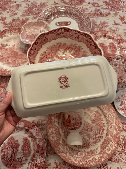 Burleigh “Victorian Chintz” Pink Transferware Sandwich Tray / Platter | England, c. 1960s–1990s