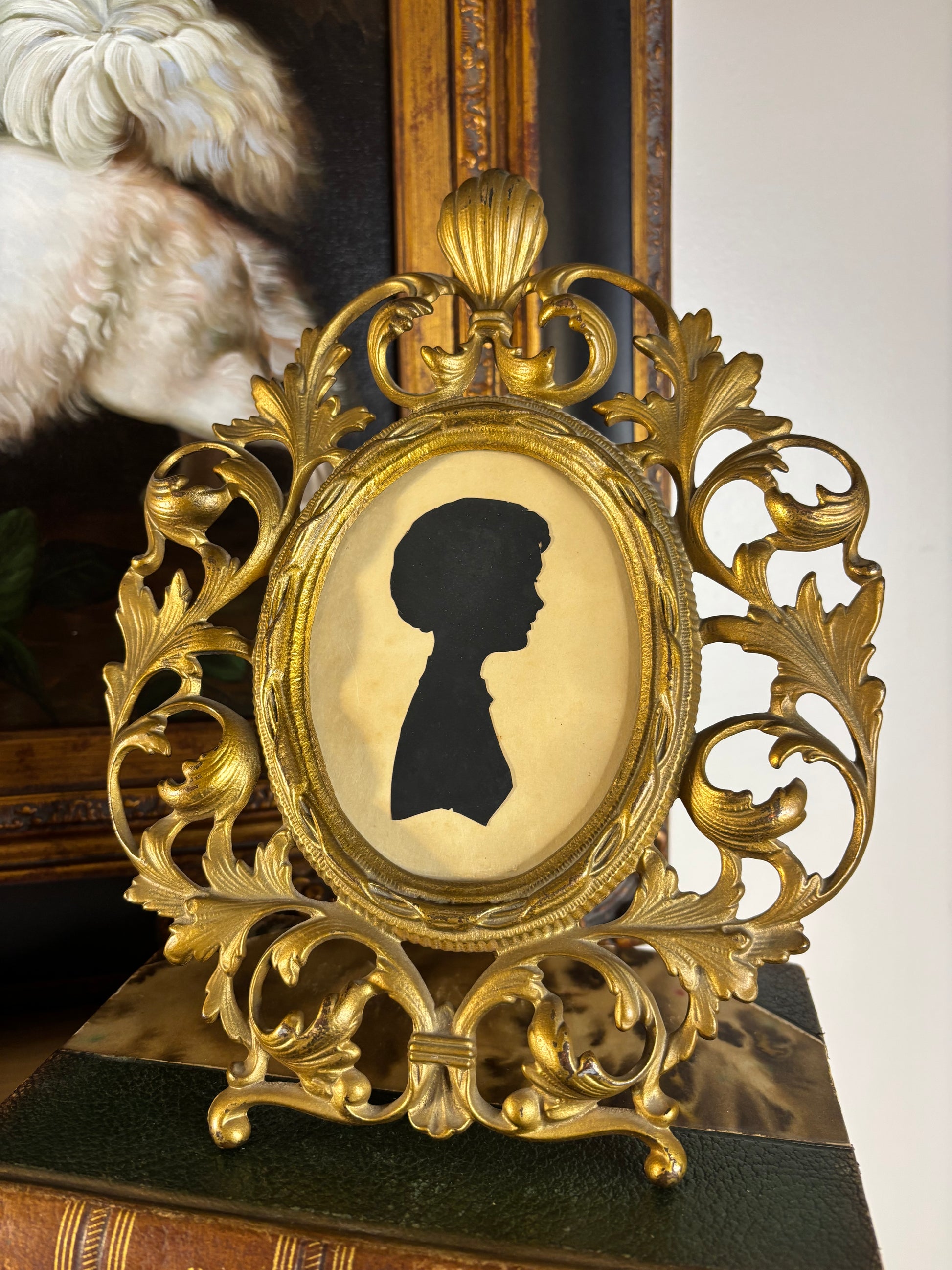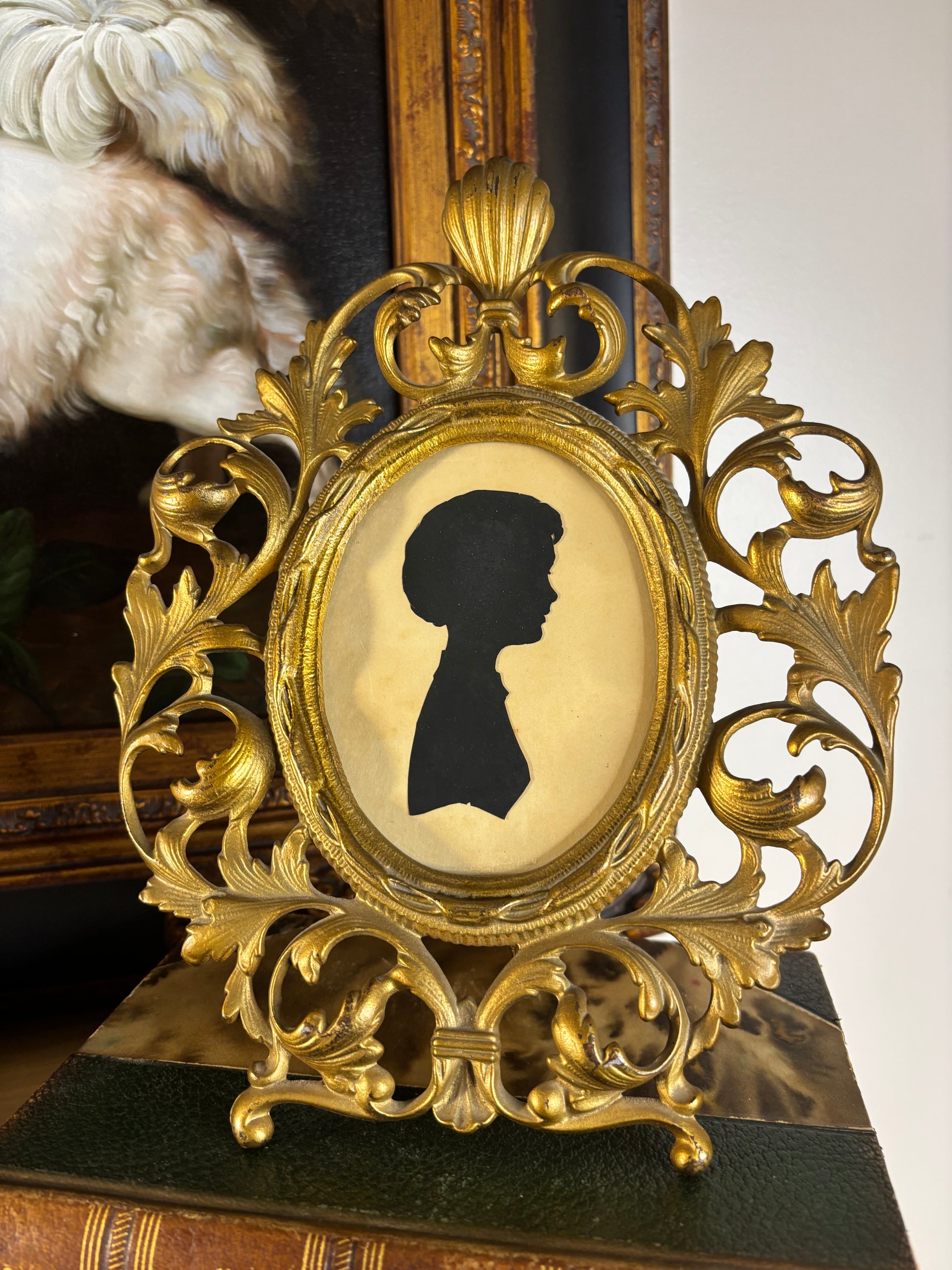 Beautiful ornate framed silhouette! Frame measures 11.5” x 8 3/4”.