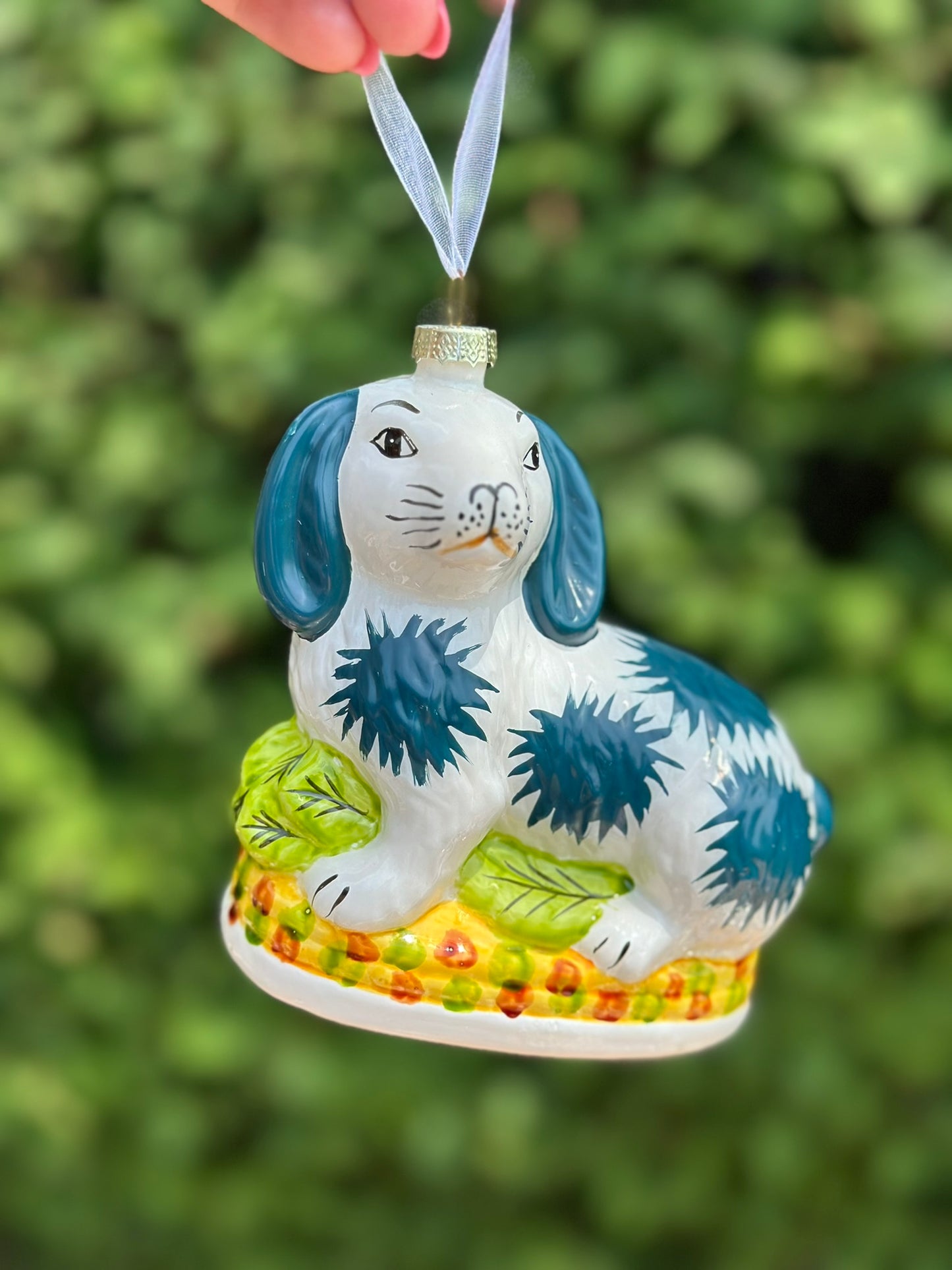 Staffy Bunny Rabbit Glass Ornament (Single) Pink & Blue - 9Lx2.5Wx4.5H