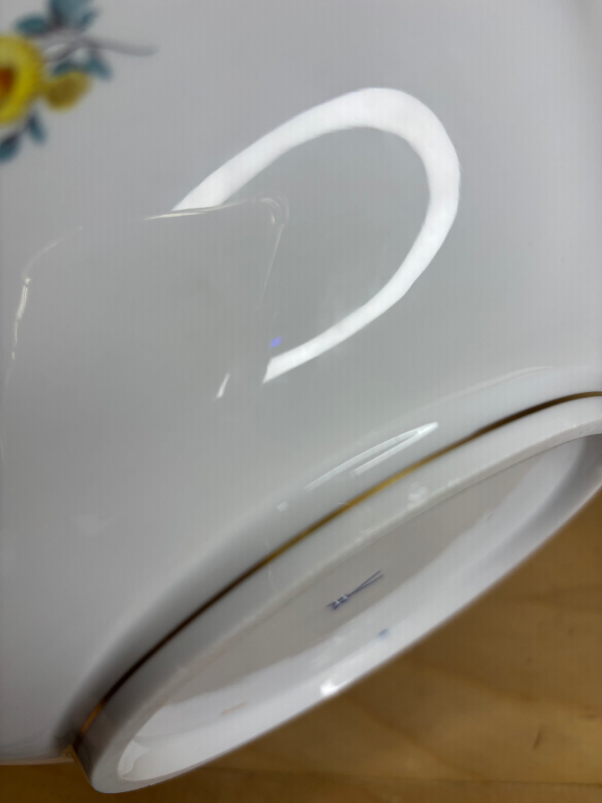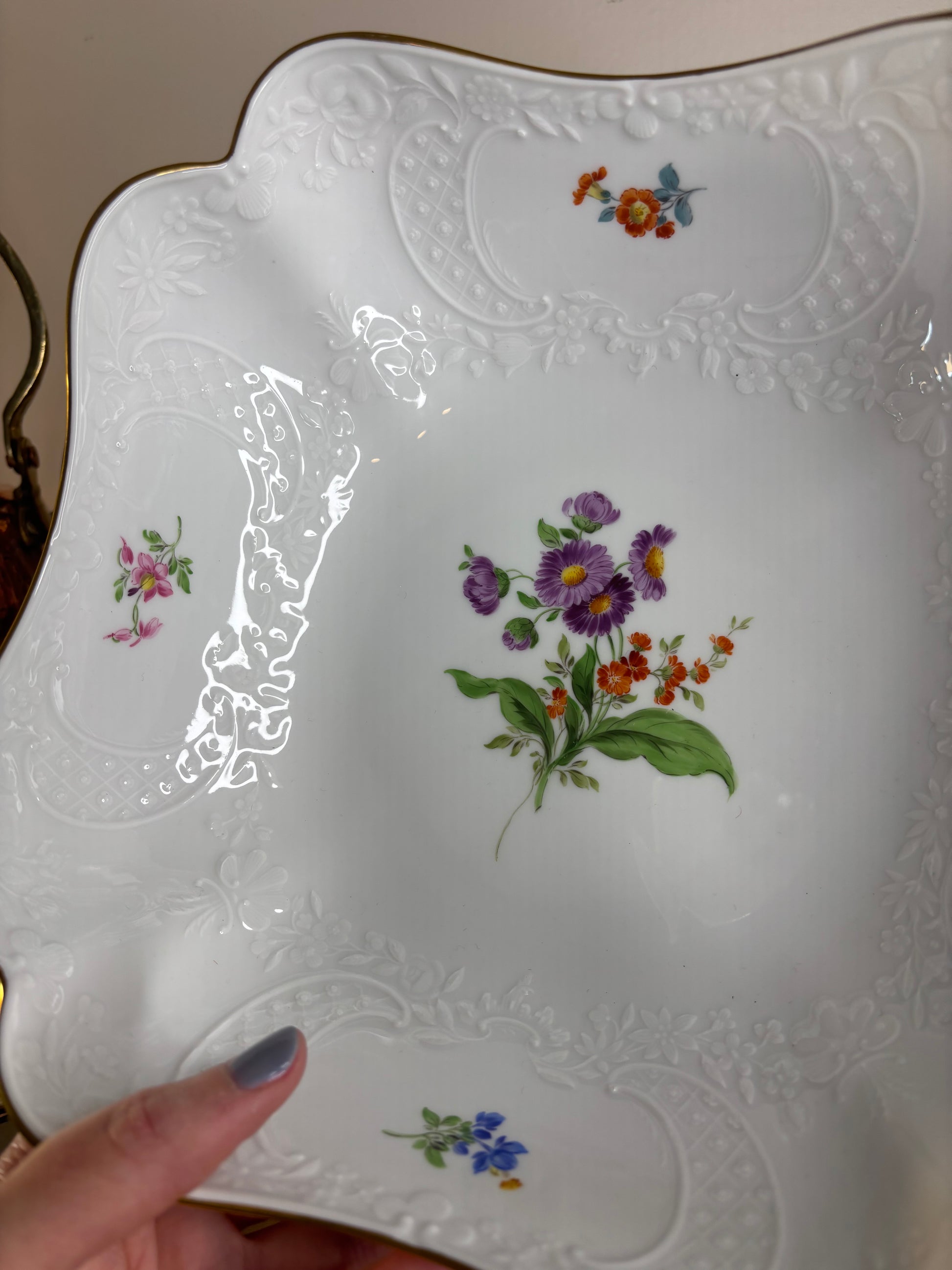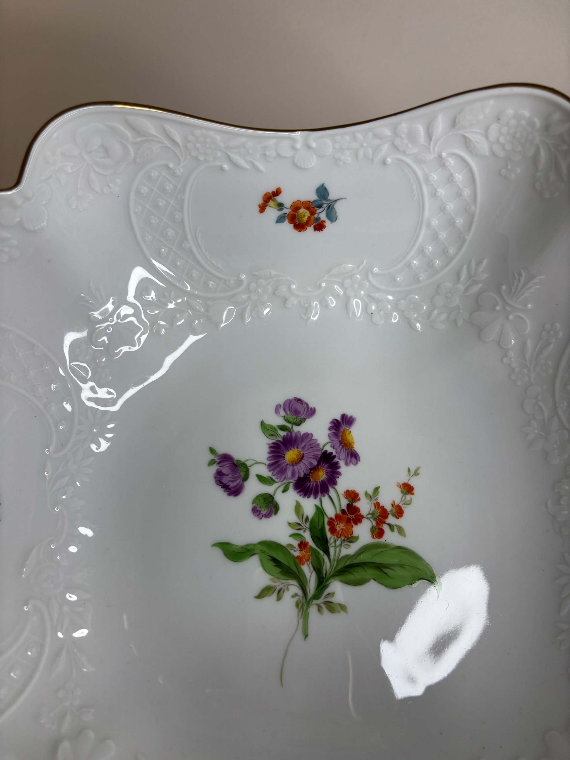 Lovely Meissen floral bowl with gold rim and embossed designs!